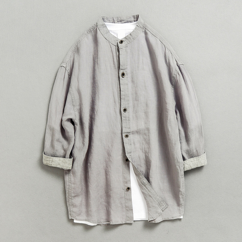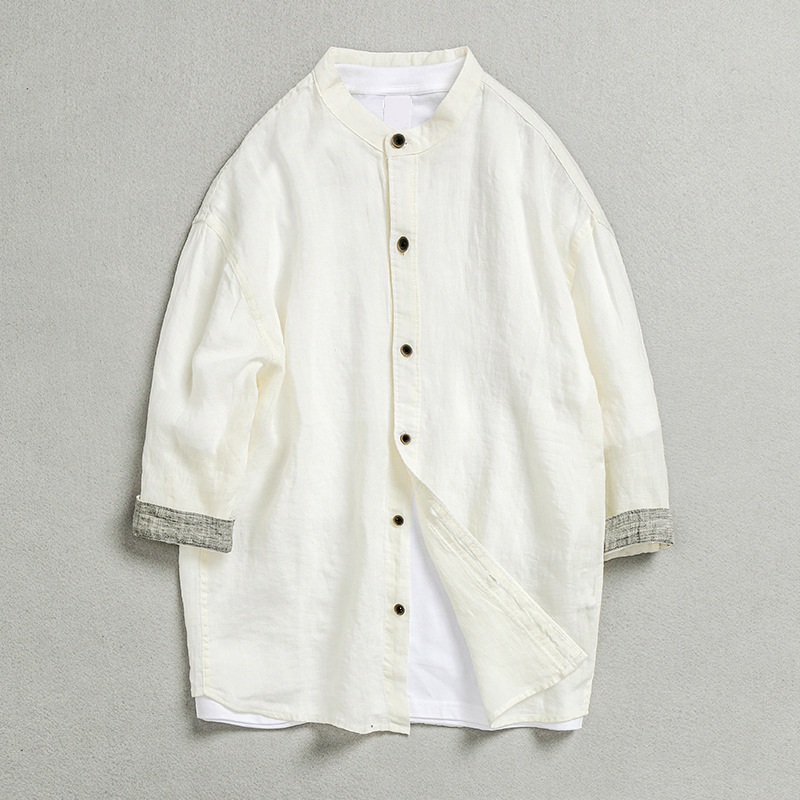 Mùa hè mới vải lanh 7 điểm tay áo sơ mi nam phong cách Hồng Kông rộng giản dị áo khoác retro áo sơ mi người đàn ông nhà sản xuất 3892