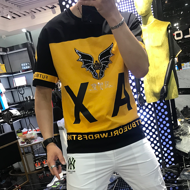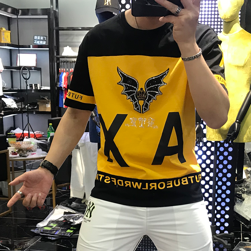 Mùa hè năm 2021 của nam giới ga châu Âu mới hot xu hướng áo thun in kim cương bình thường kích thước lớn lỏng tay ngắn tay của nam giới