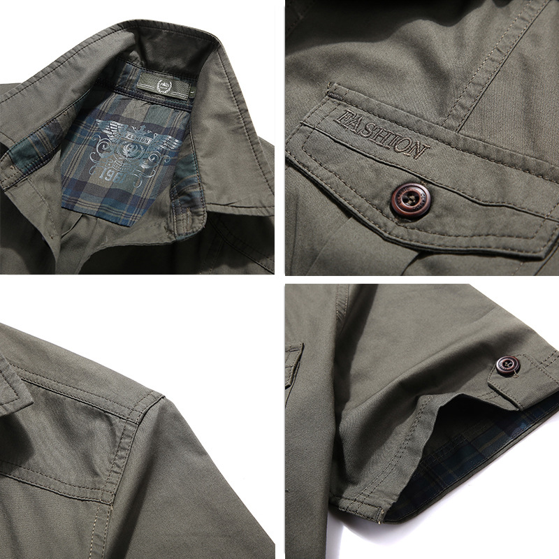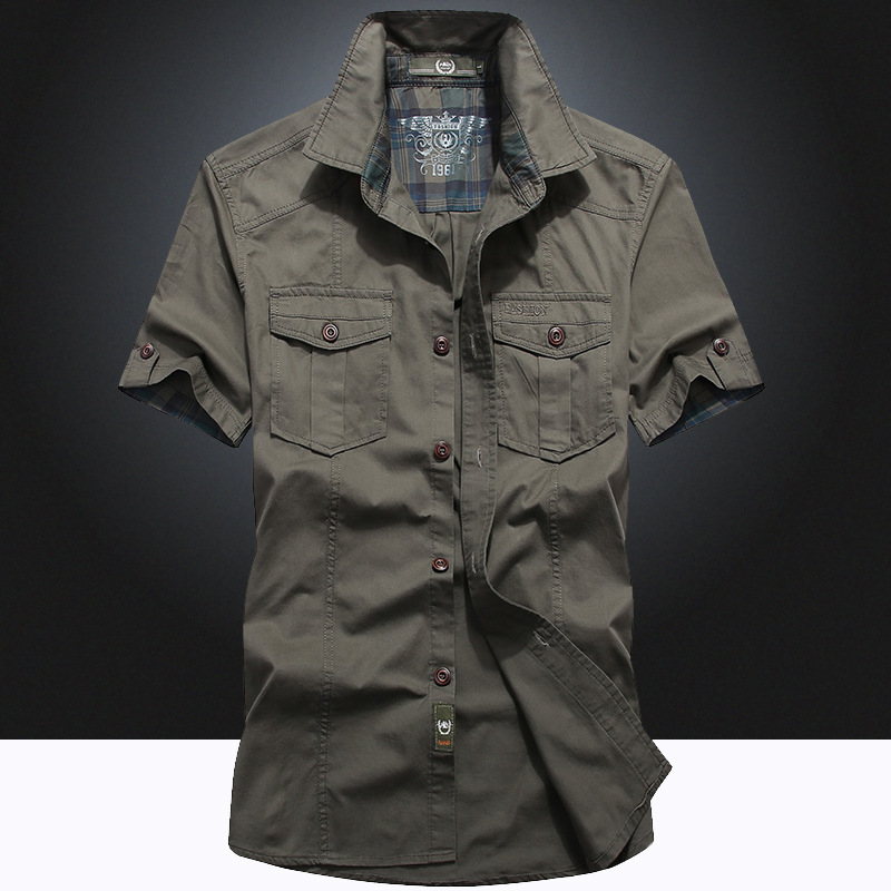 Mùa Hè Năm 2023 Áo Sơ Mi Nam Hàng Đầu Rời Size Lớn Cotton Dụng Cụ Ngoài Trời Quân Áo Sơ Mi Nửa Tay