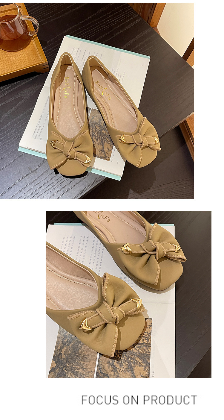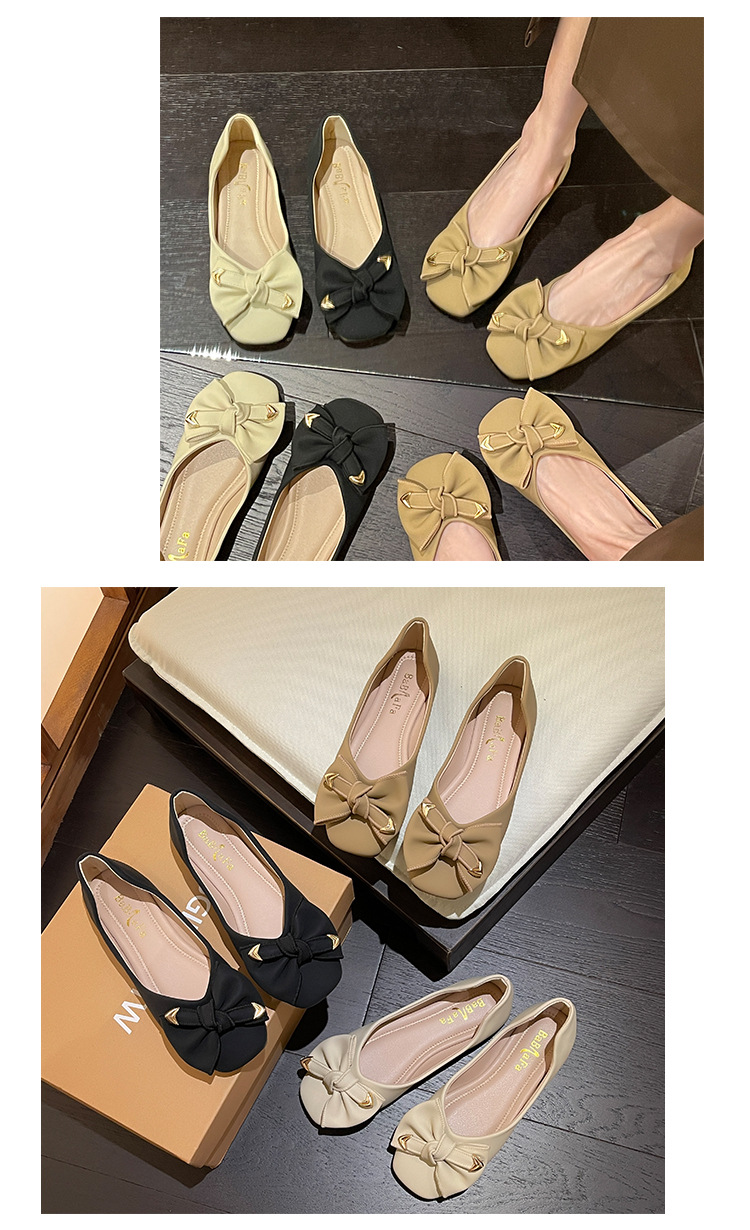 Mùa Hè Năm 2023 Mới Đế Bằng Nữ Tất Cả Trận Đấu Dẹt Nơ Phong Cách Cổ Tích Đầu Vuông Cổ Thấp giày Đơn Nữ