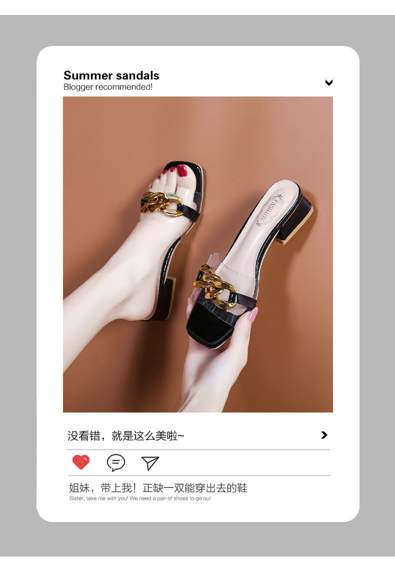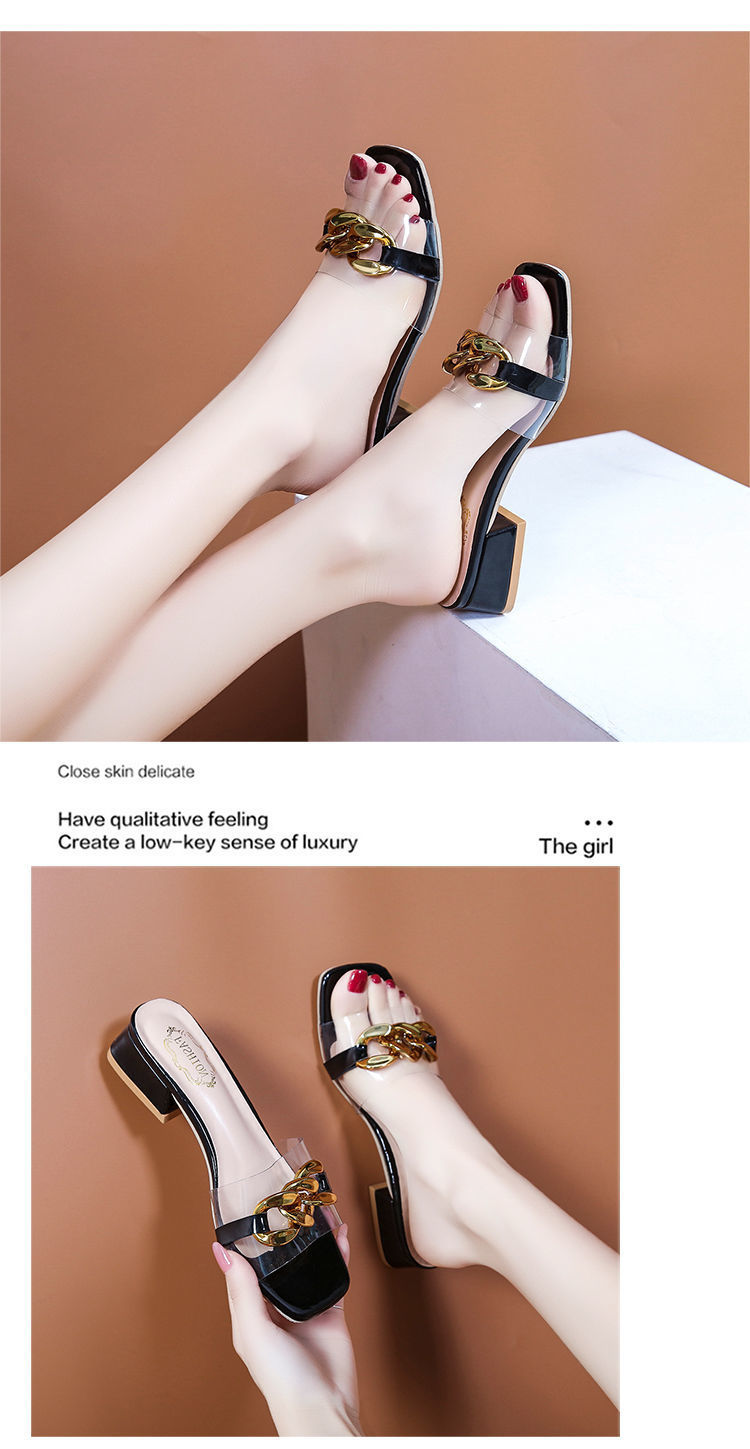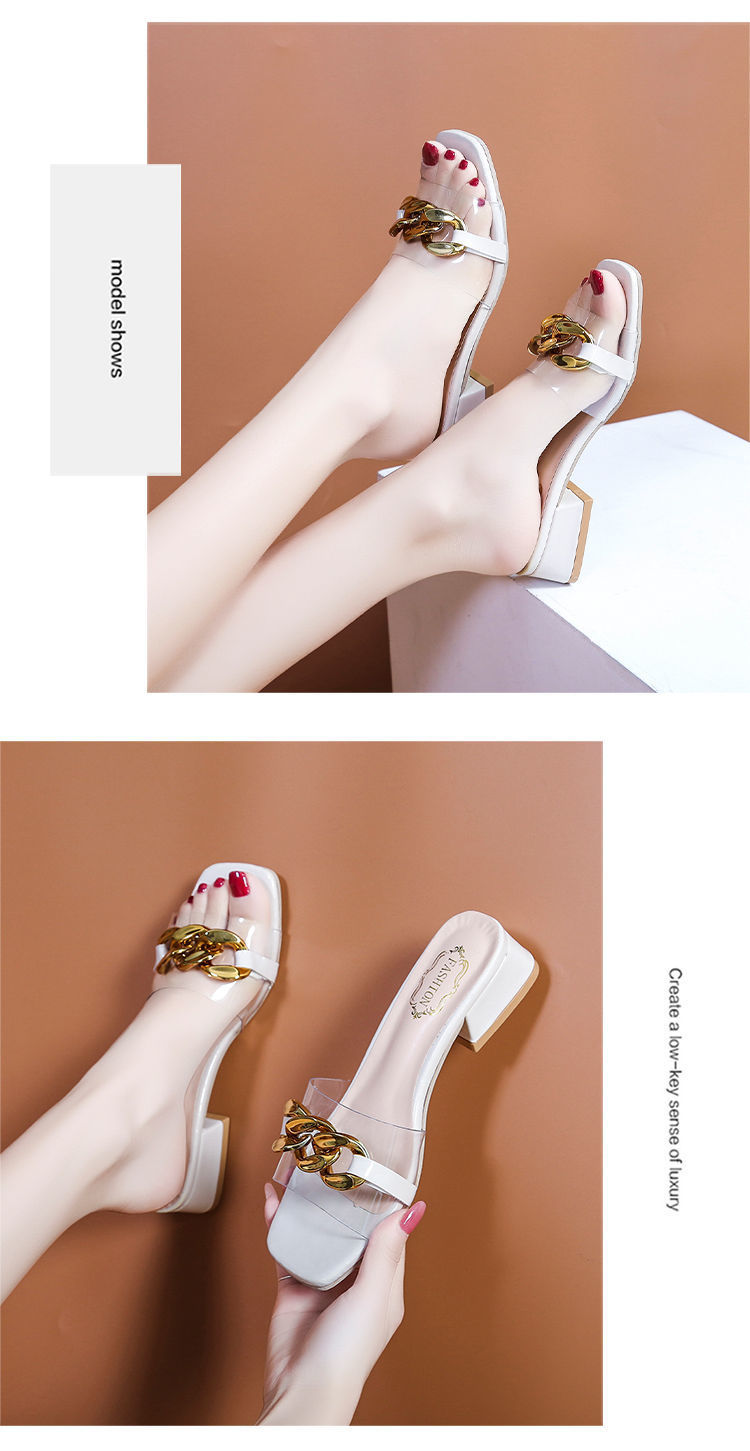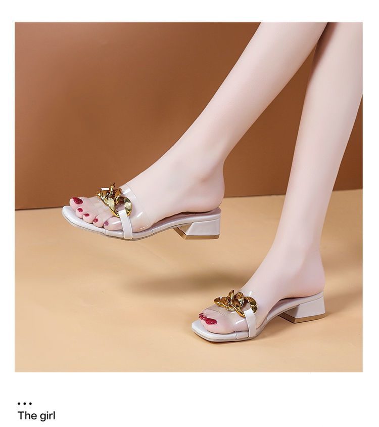 Mùa Hè Năm 2023 Mới Trong Suốt Giày Sandal Nữ Đầu Vuông Gót Chun Dép Một Từ Dây Vừa Gót Cao Gót Phong Cách Cổ Tích Xăng Đan