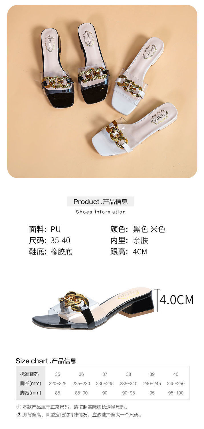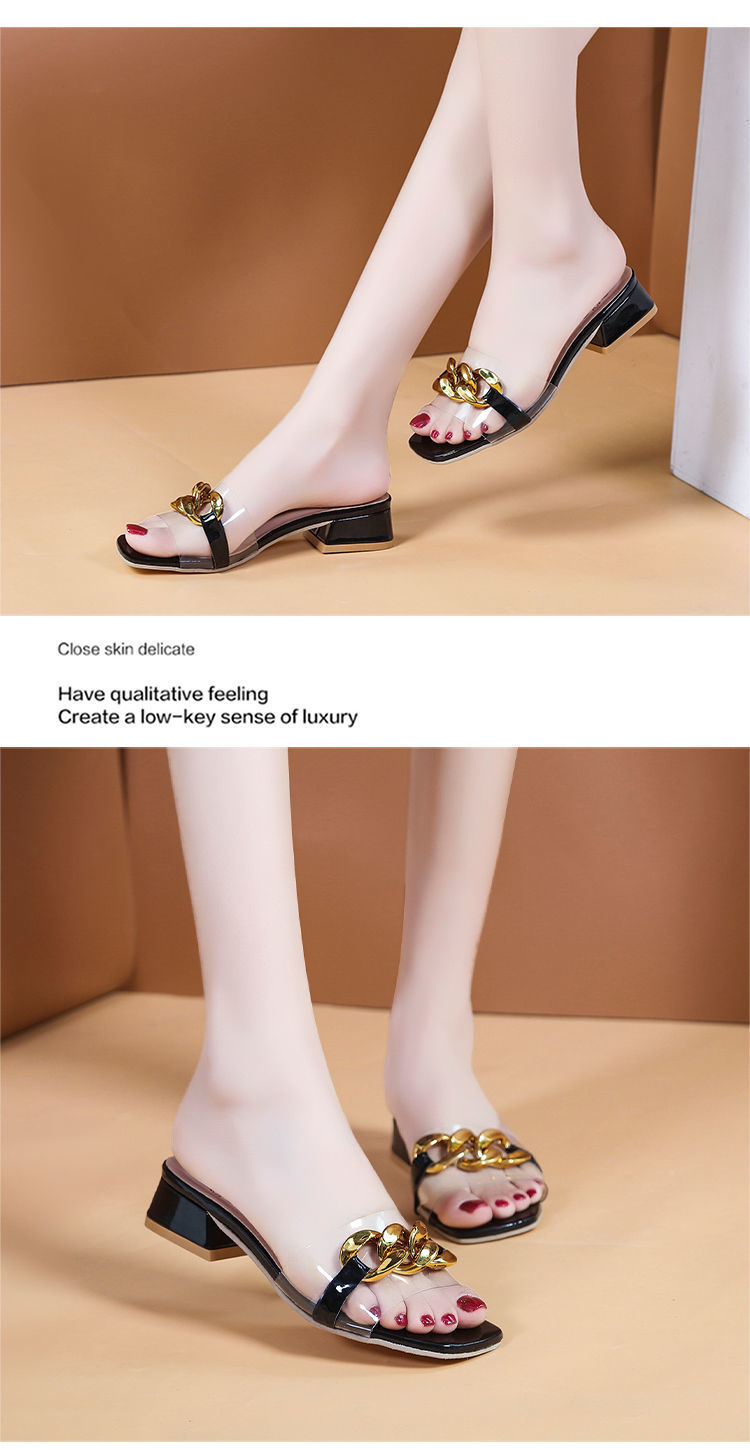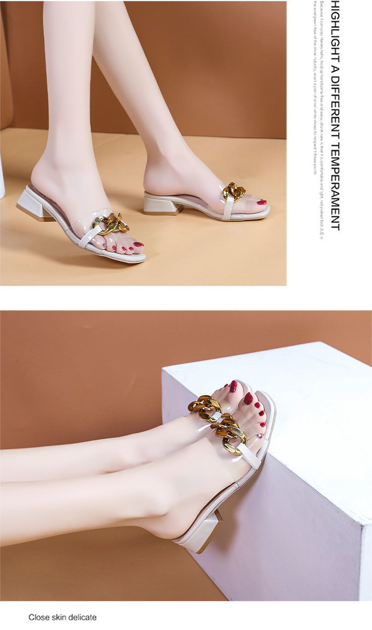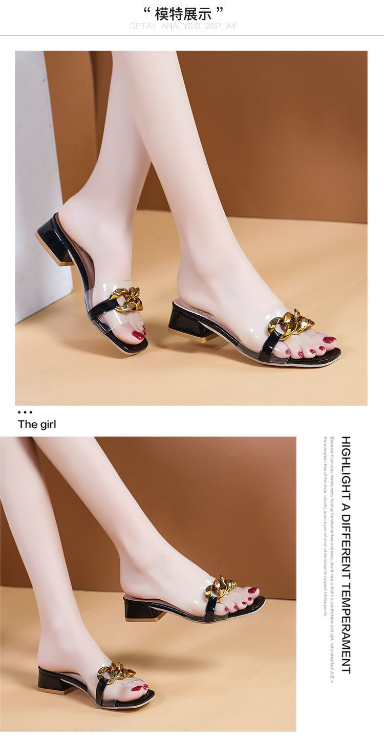 Mùa Hè Năm 2023 Mới Trong Suốt Giày Sandal Nữ Đầu Vuông Gót Chun Dép Một Từ Dây Vừa Gót Cao Gót Phong Cách Cổ Tích Xăng Đan