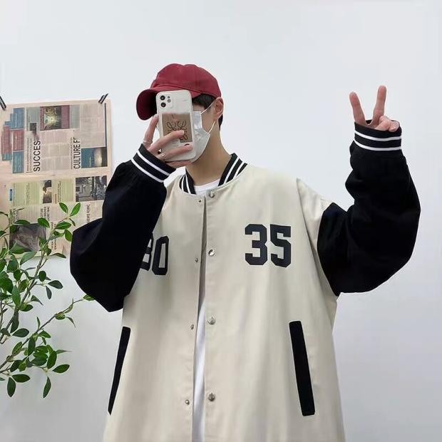Mùa hè nam áo khoác mỏng áo len phối xu hướng ins cặp đôi đồng phục bóng chày cardigan quần áo sinh viên rời
