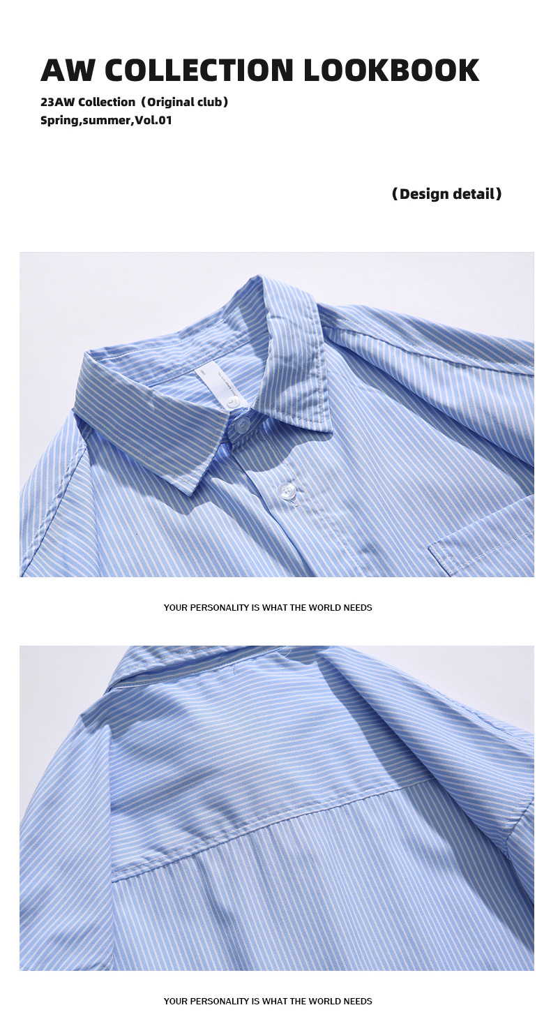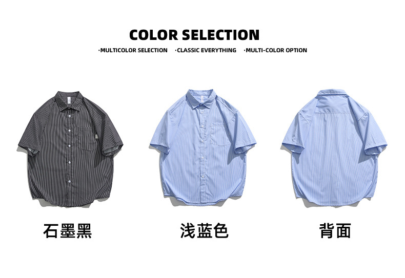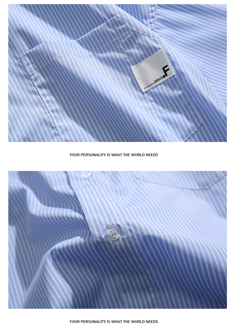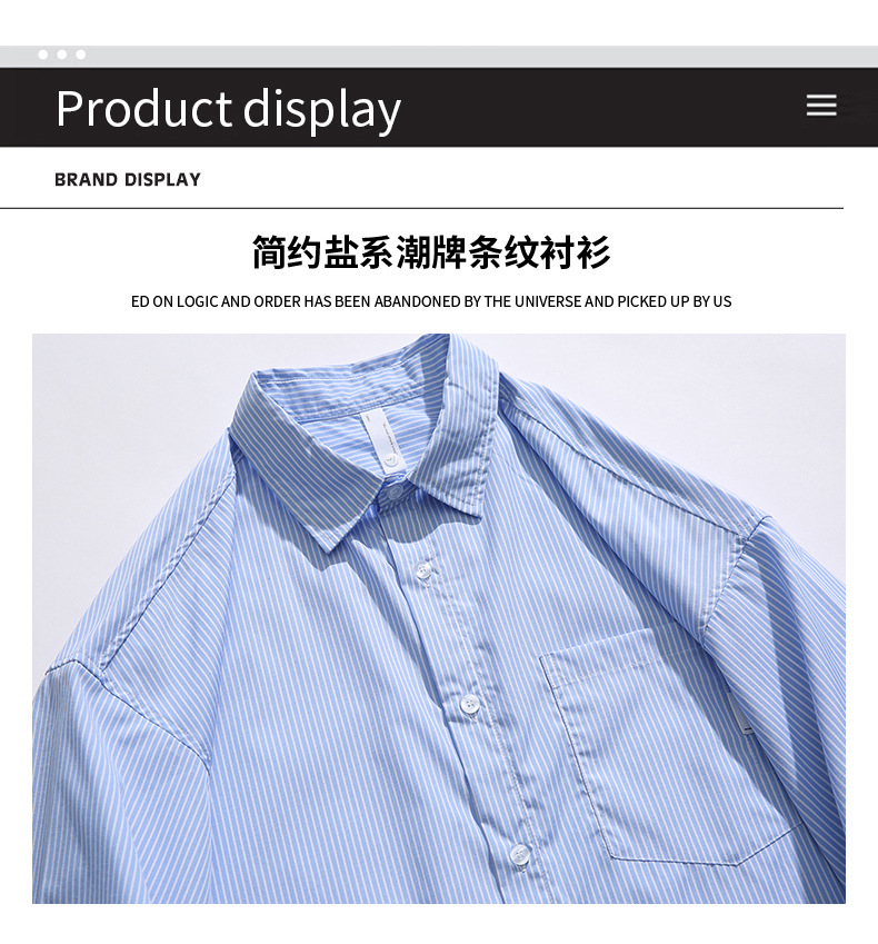 Mùa hè Nhật Bản phóng khoáng thành phố thiết kế cảm giác ánh sáng và gió quen thuộc áo sơ mi thủy triều thương hiệu cặp đôi áo sơ mi nam sọc ngắn tay