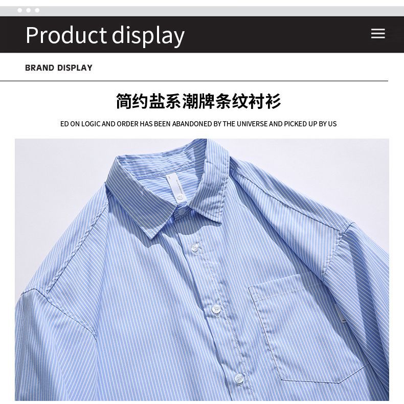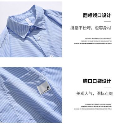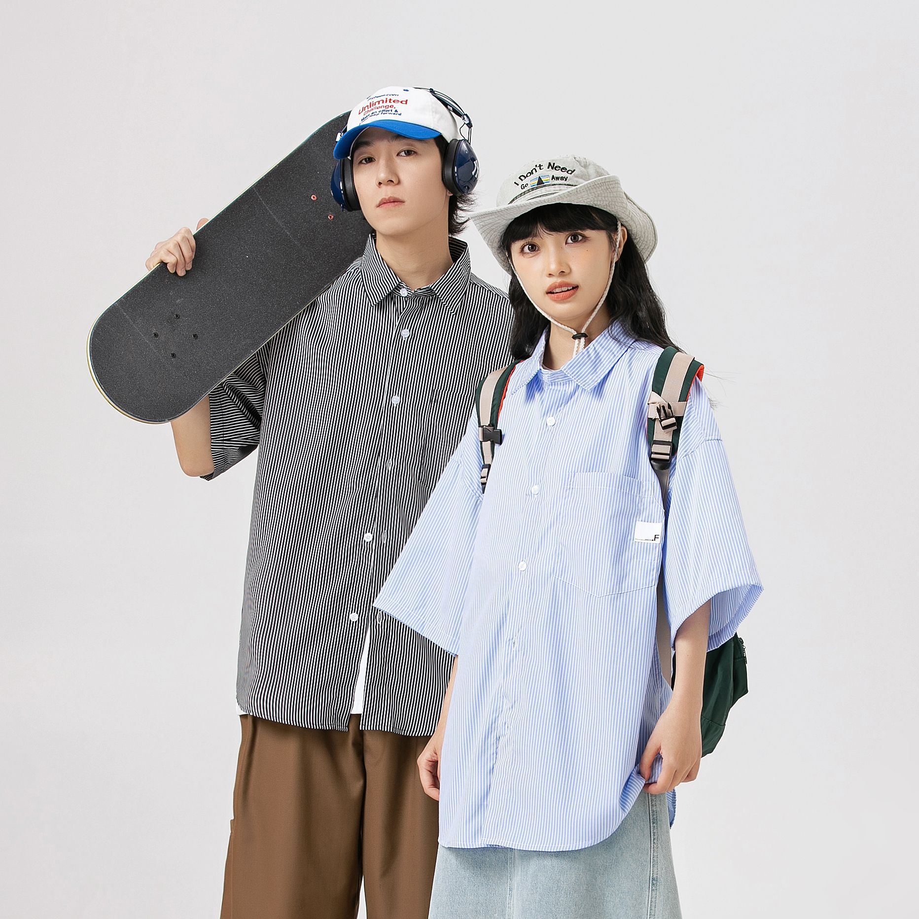 Mùa hè Nhật Bản phóng khoáng thành phố thiết kế cảm giác ánh sáng và gió quen thuộc áo sơ mi thủy triều thương hiệu cặp đôi áo sơ mi nam sọc ngắn tay