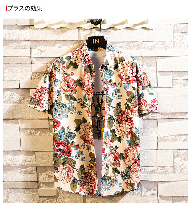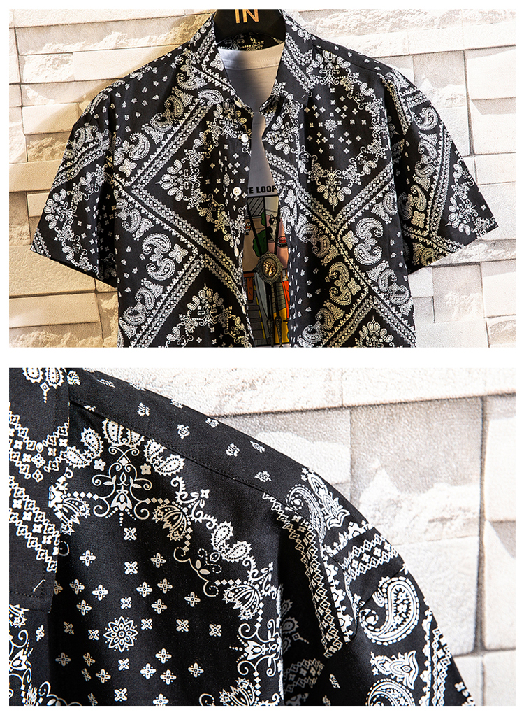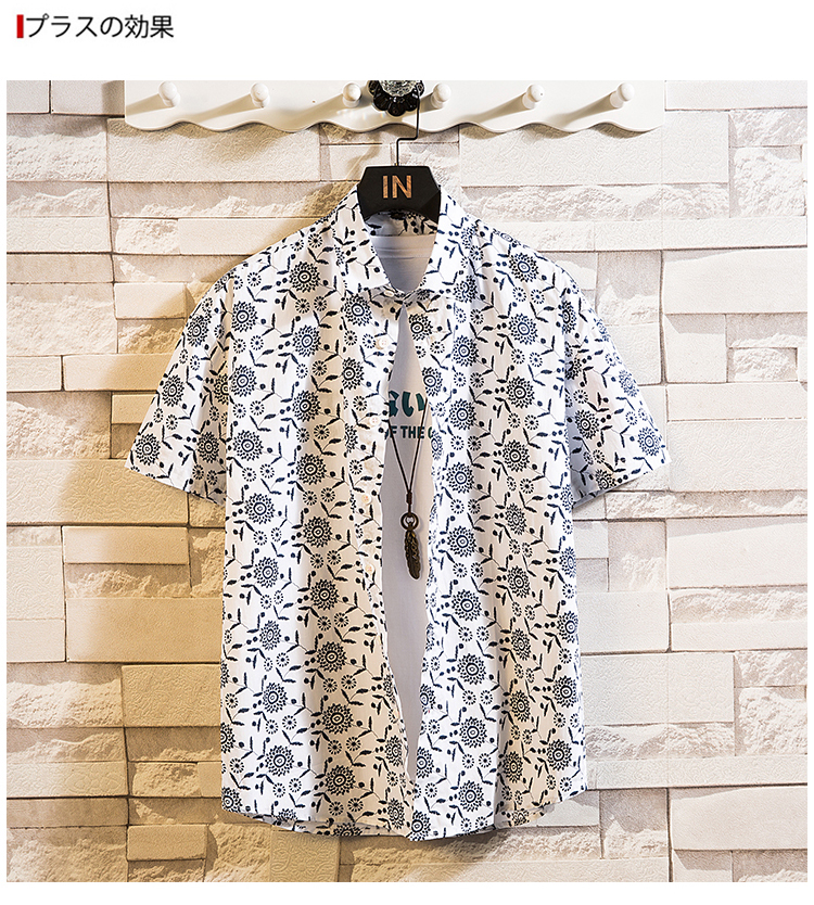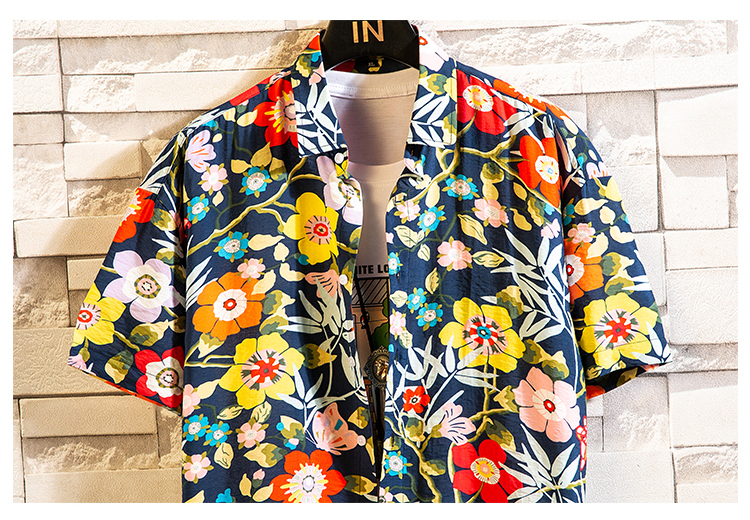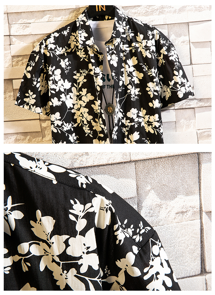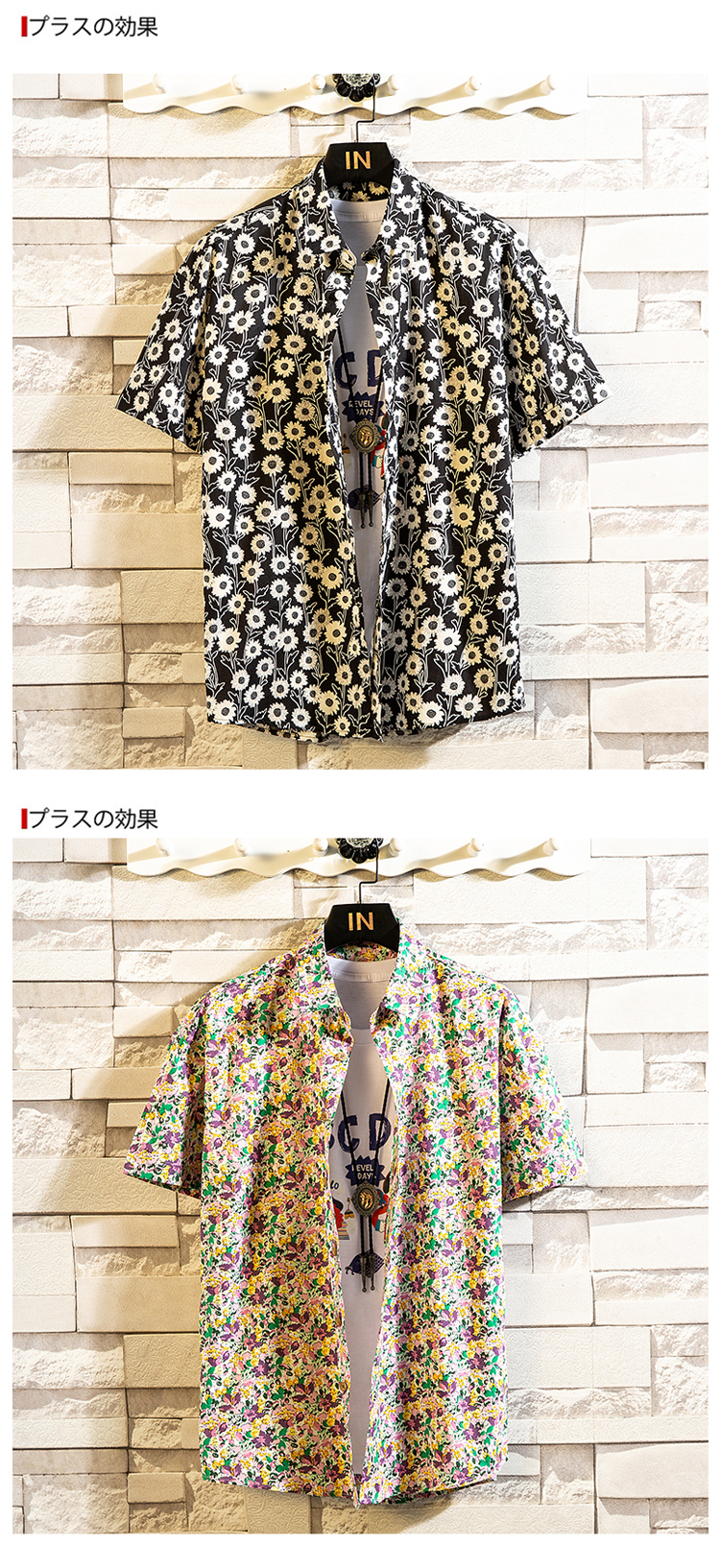 Mùa hè nhỏ in hoa ngắn tay áo sơ mi nam họa tiết cá tính đi biển giản dị áo sơ mi cotton mỏng xu hướng tạo mẫu tóc