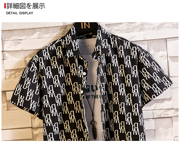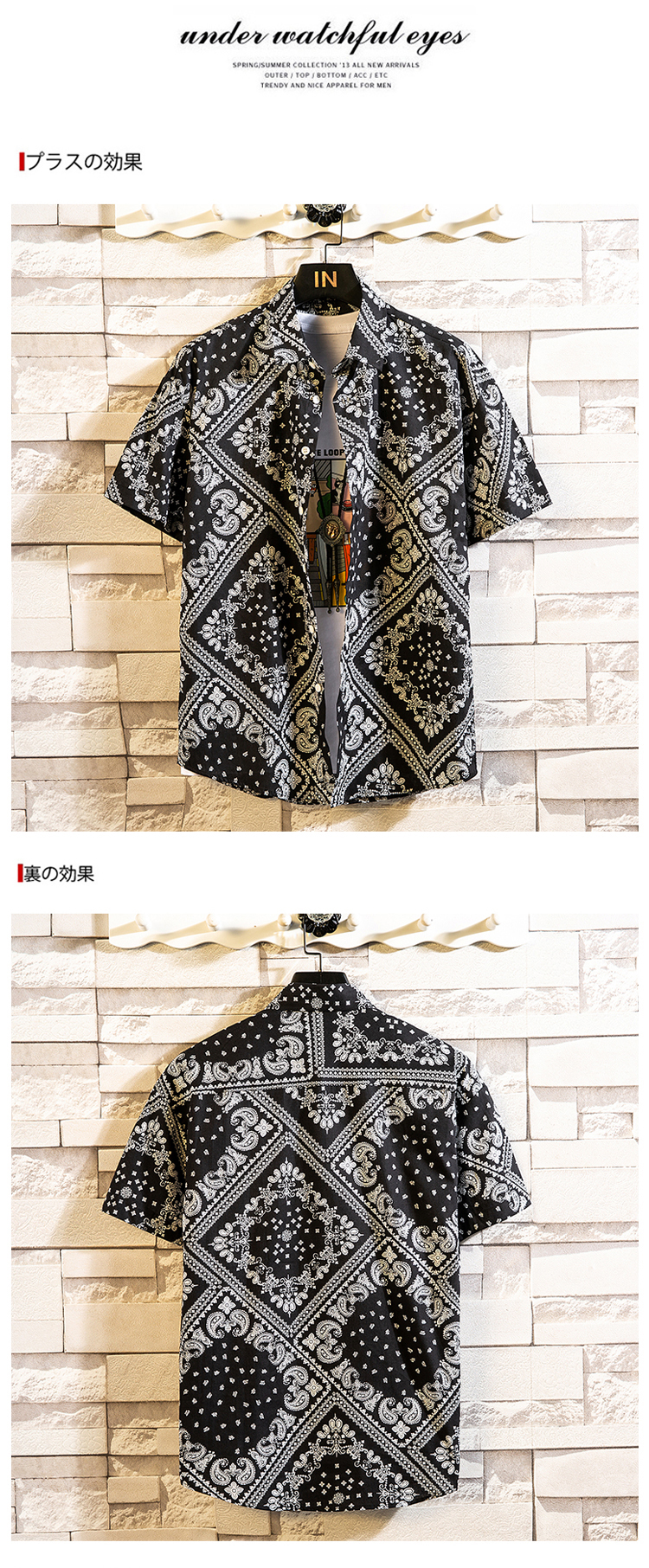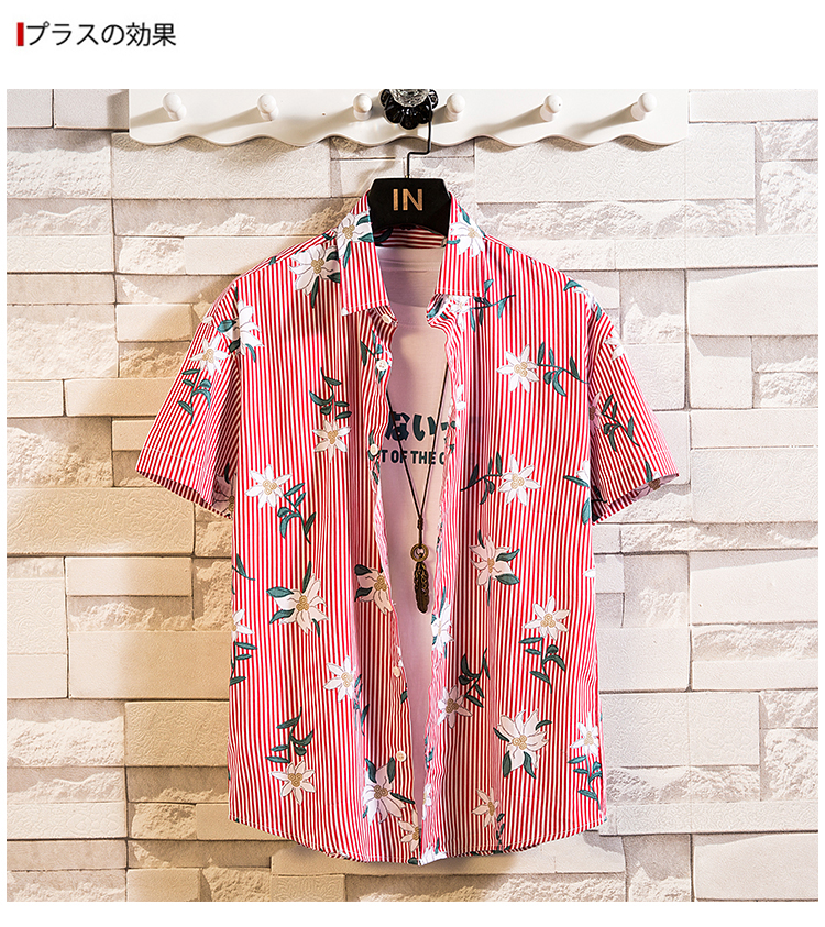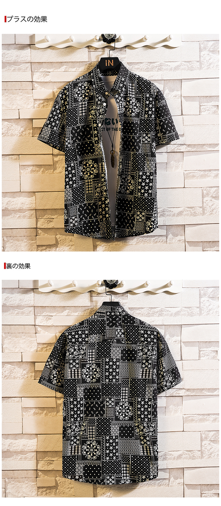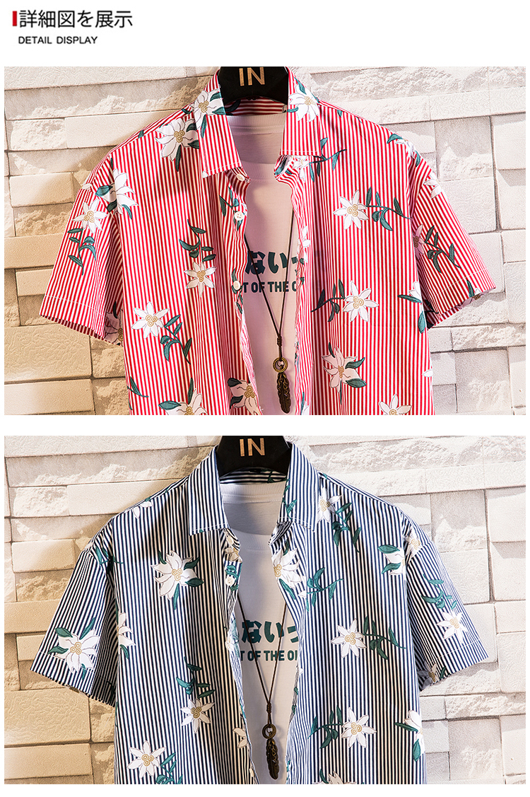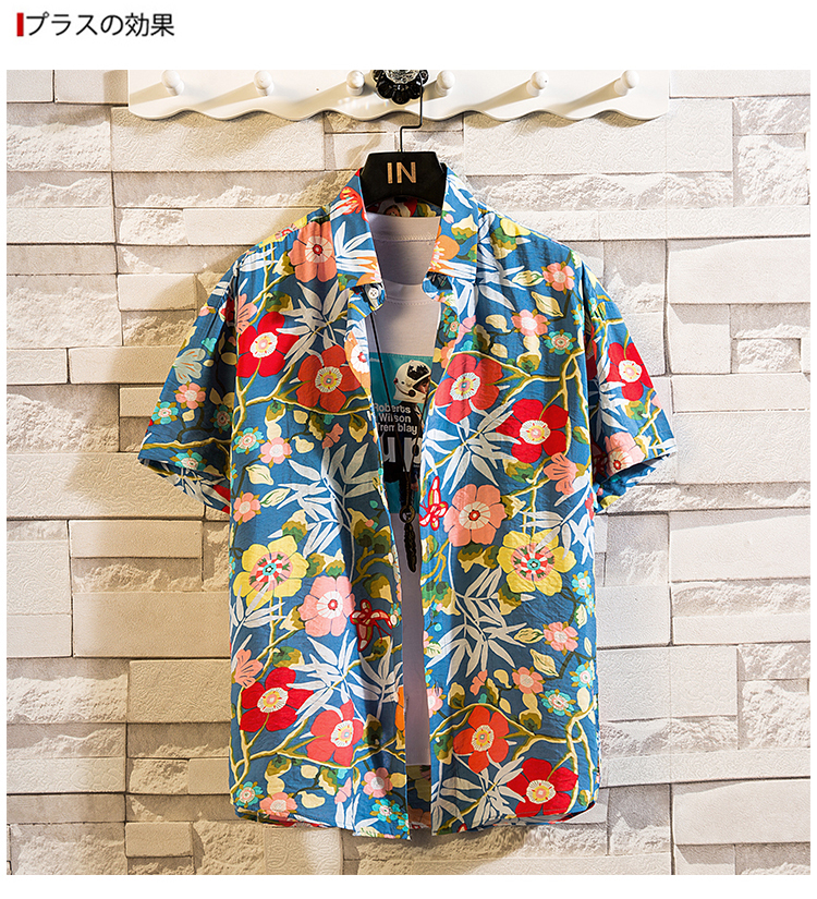 Mùa hè nhỏ in hoa ngắn tay áo sơ mi nam họa tiết cá tính đi biển giản dị áo sơ mi cotton mỏng xu hướng tạo mẫu tóc