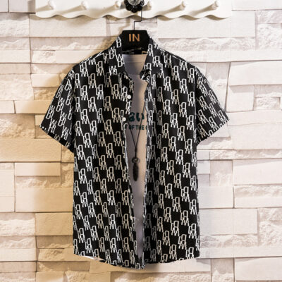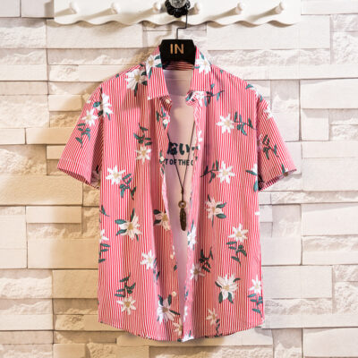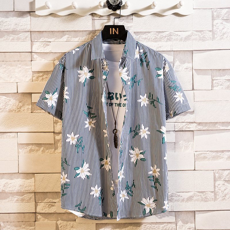 Mùa hè nhỏ in hoa ngắn tay áo sơ mi nam họa tiết cá tính đi biển giản dị áo sơ mi cotton mỏng xu hướng tạo mẫu tóc
