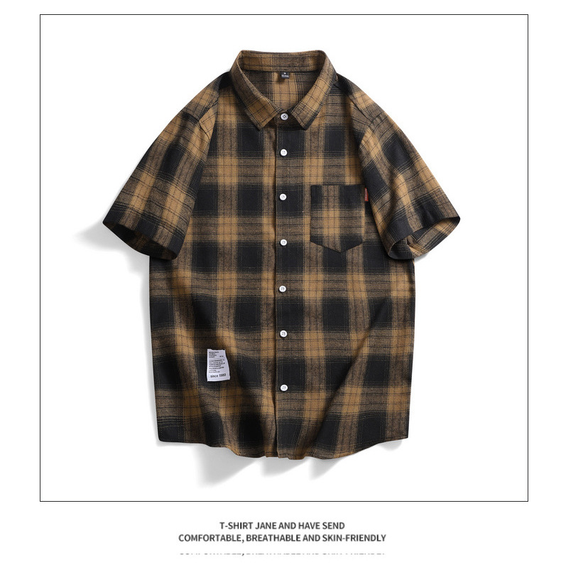 Mùa hè phong cách nóng bỏng xu hướng kẻ sọc áo sơ mi nam mới phong cách Hồng Kông kích thước lớn áo khoác rộng giản dị áo sơ mi nam kẻ sọc