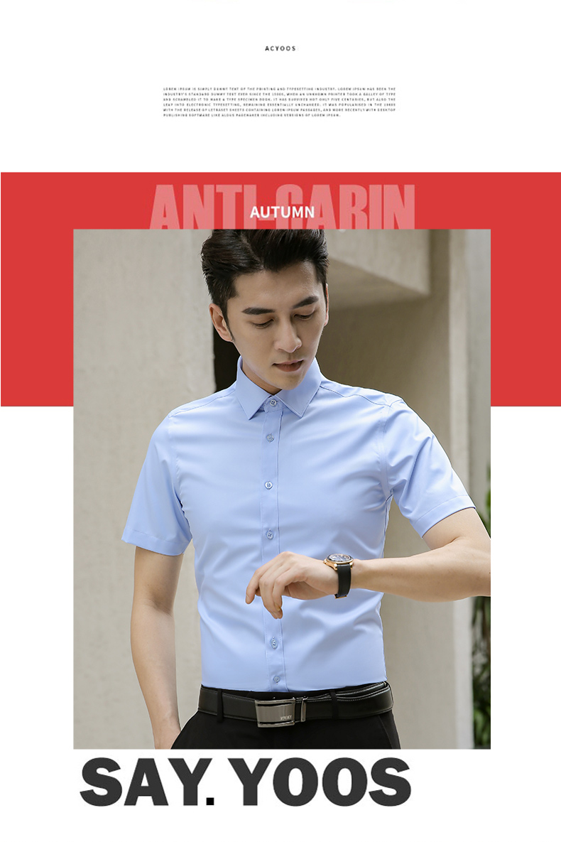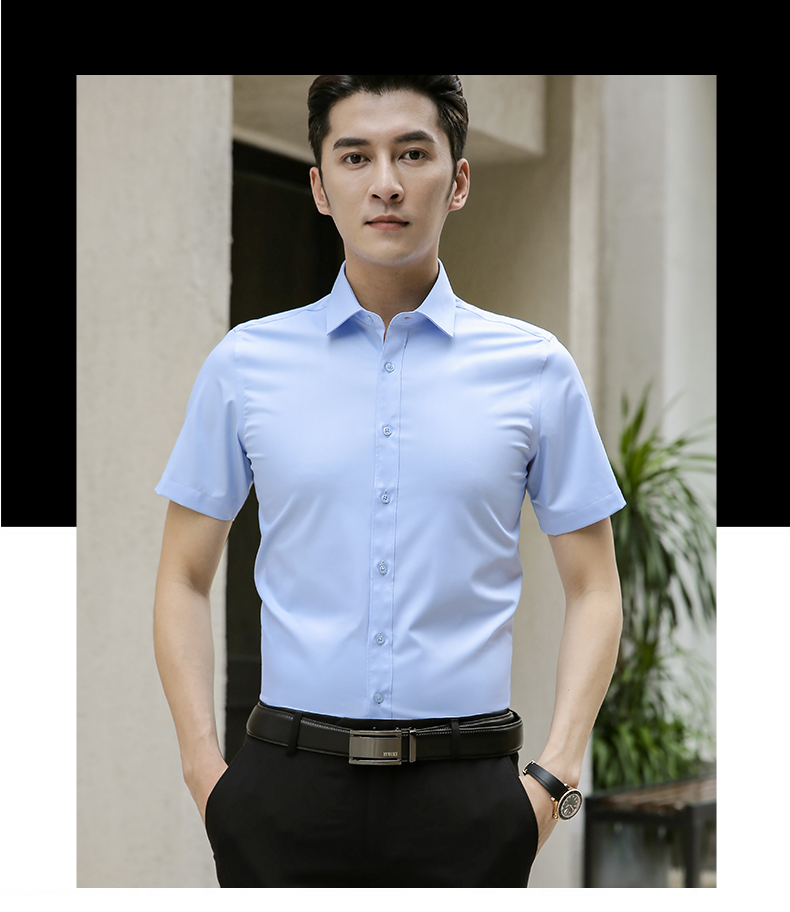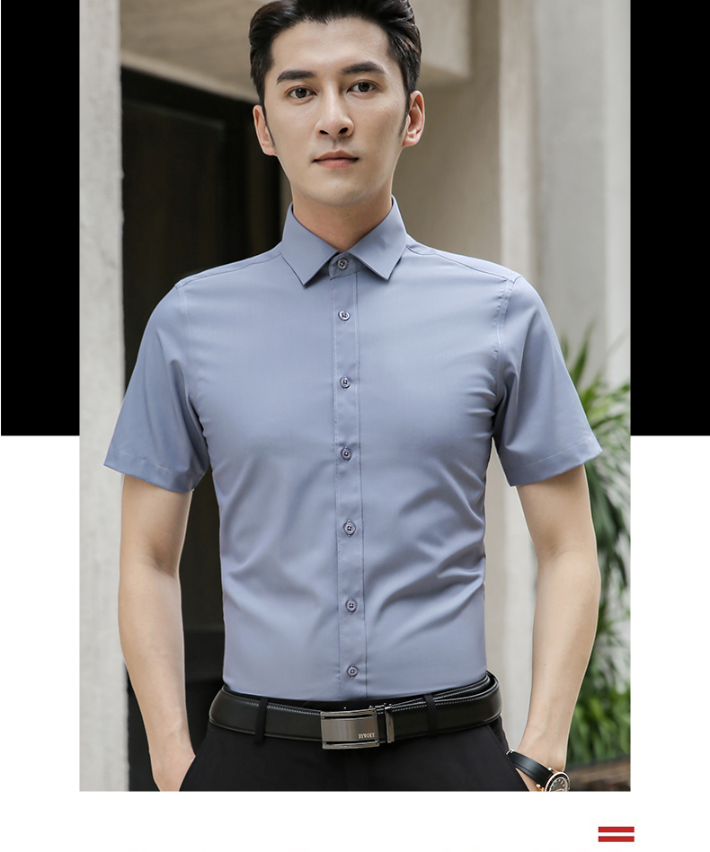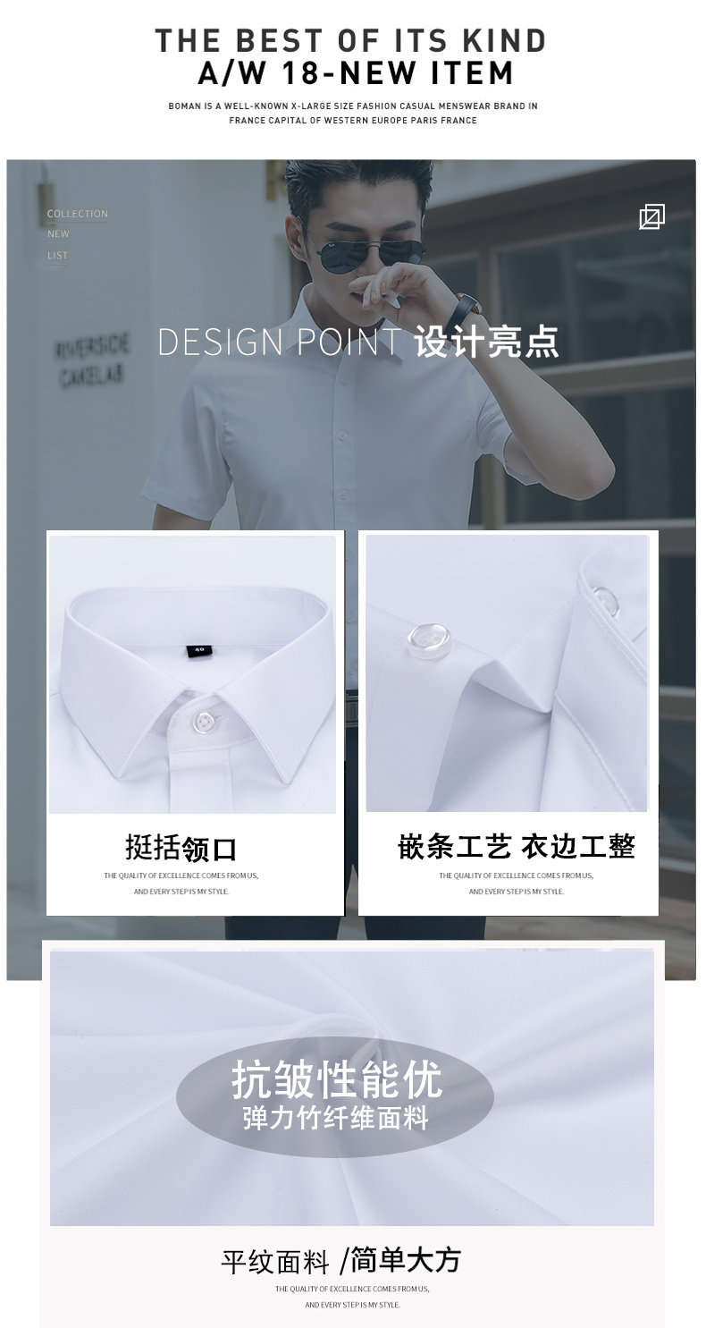 Mùa hè sợi tre phi sắt ngắn tay áo sơ mi trắng nam cao cấp áo sơ mi công sở nam chuyên nghiệp trang phục chính thức băng lụa áo sơ mi inch