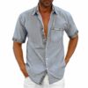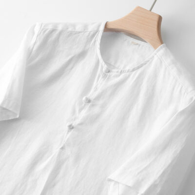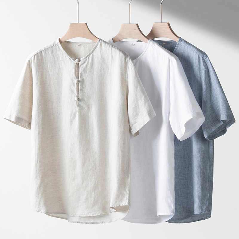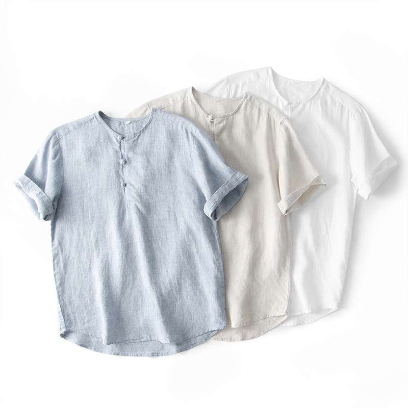 Mùa Hè Vải Lanh Nam Phong Cách Trung Hoa Áo Sơ Mi Ngắn Tay Áo Chui Đầu Cotton Và Lanh Áo Sơ Mi Nam Nhà Máy One Drop 164