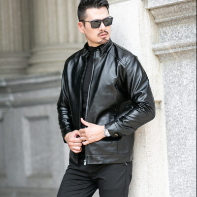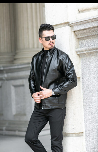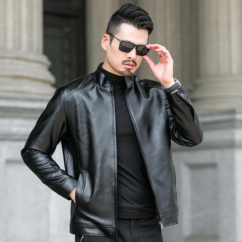 Mùa Thu Đông 2022 Mới Cổ Đứng PU Mô Phỏng Da Nam Nam Haining Áo Khoác Áo Khoác Chiều Dài Cha Cha