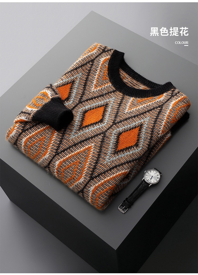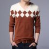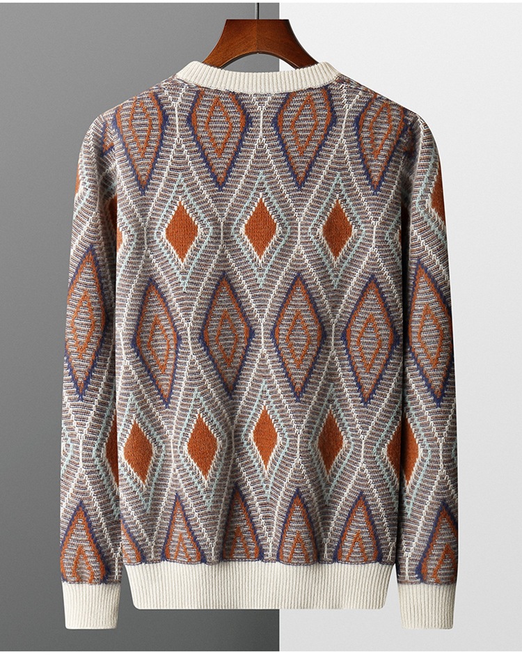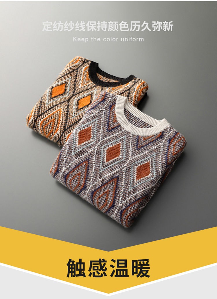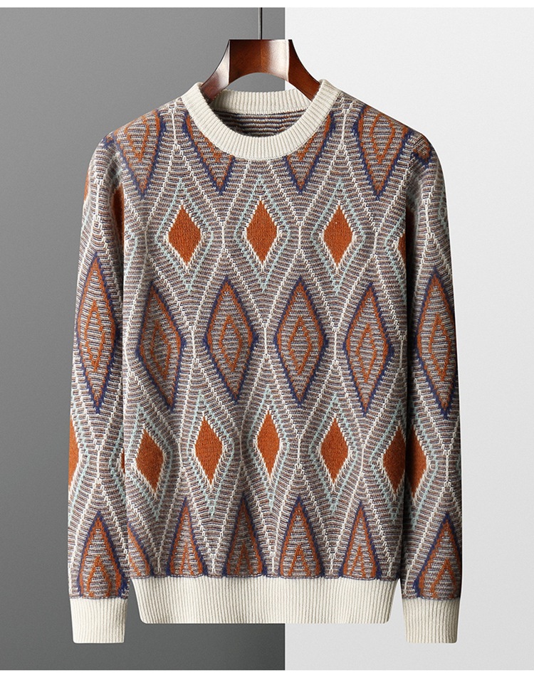 Mùa Thu Đông 2022 Mới Nguyên Chất Áo Len Cashmere Nam Cổ Tròn Chui Đầu Màu Áo Len Dệt Kim Hình Thoi Phối Màu Dạ Nỉ Đáy Áo Sơ Mi