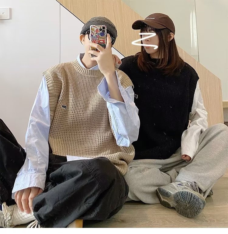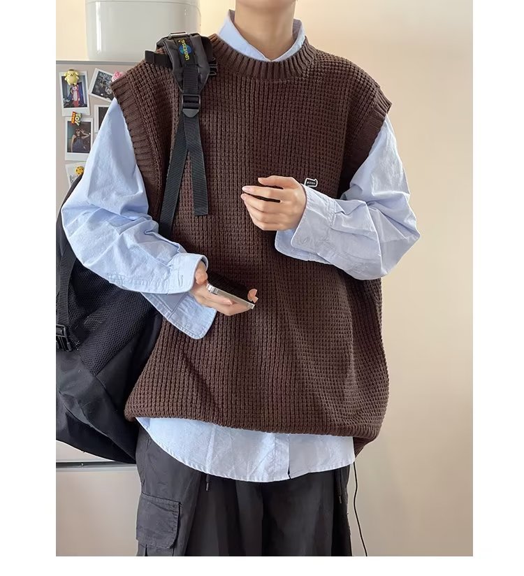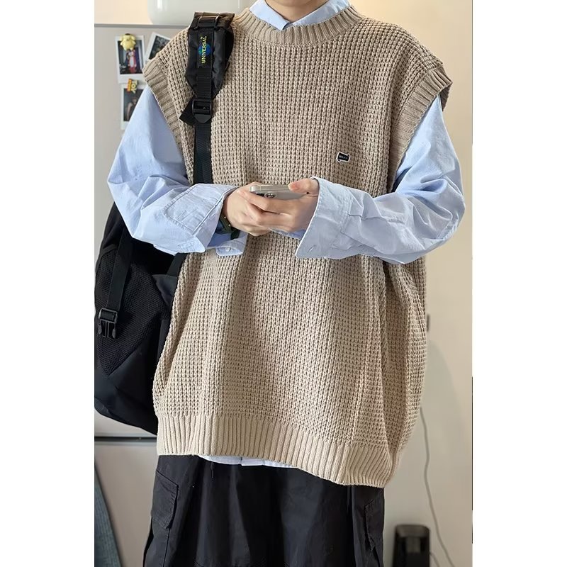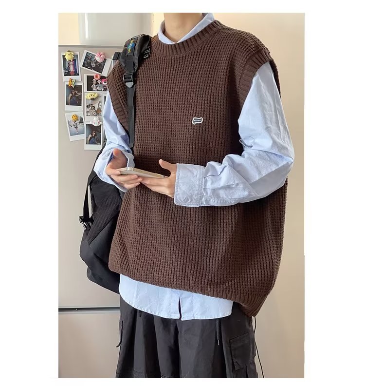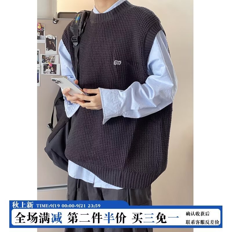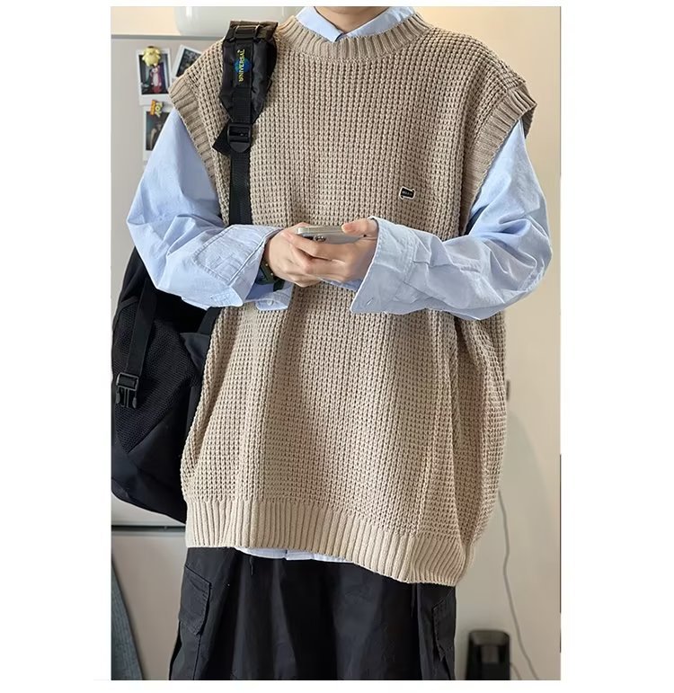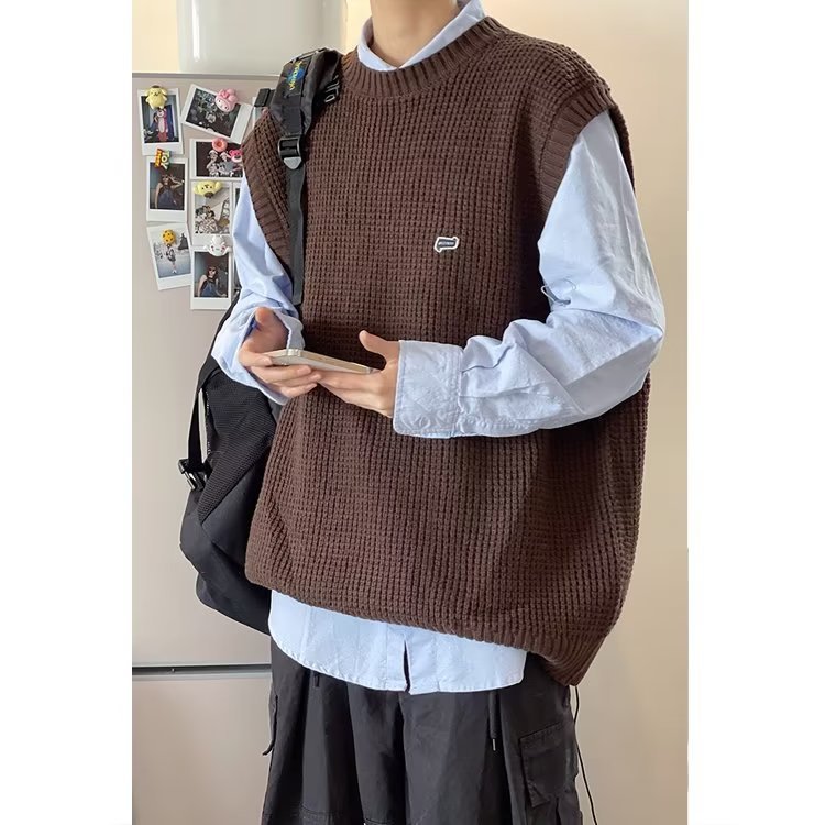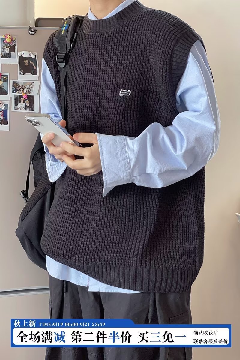 Mùa Thu Đông 2022 Phiên Bản Hàn Quốc Dáng Rộng Áo Len Dệt Kim Nam Giả Hai Mảnh Với Áo Sơ Mi Sọc Áo Len Khâu Hàng Đầu