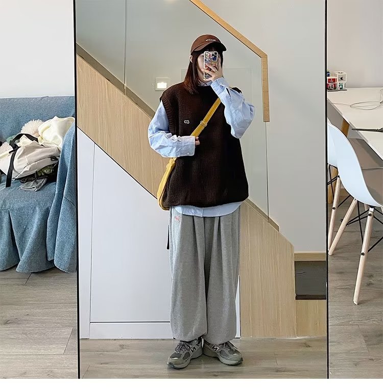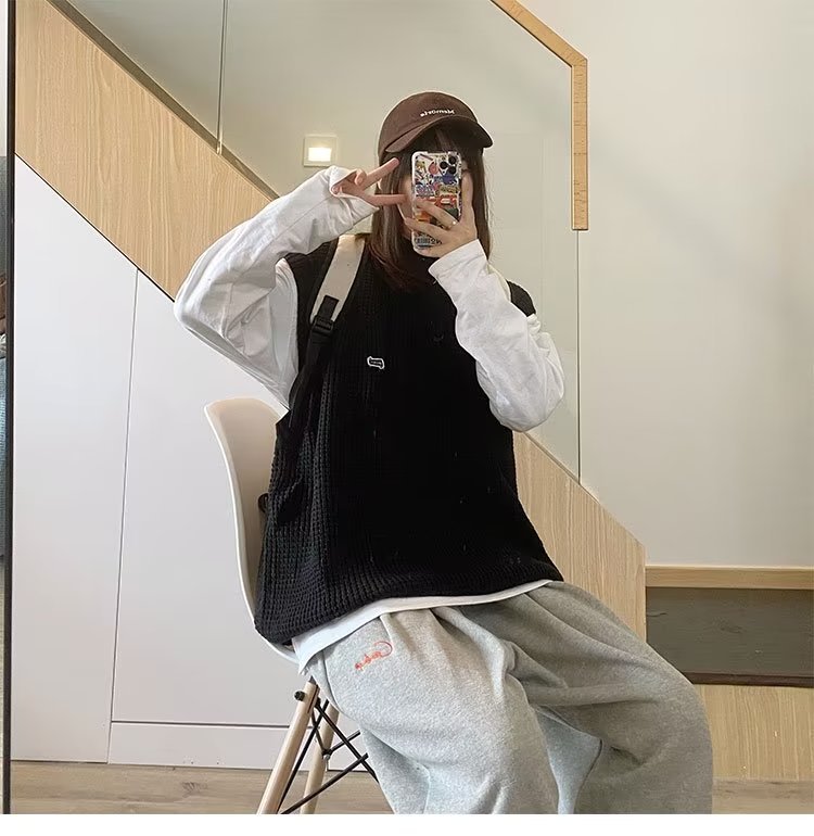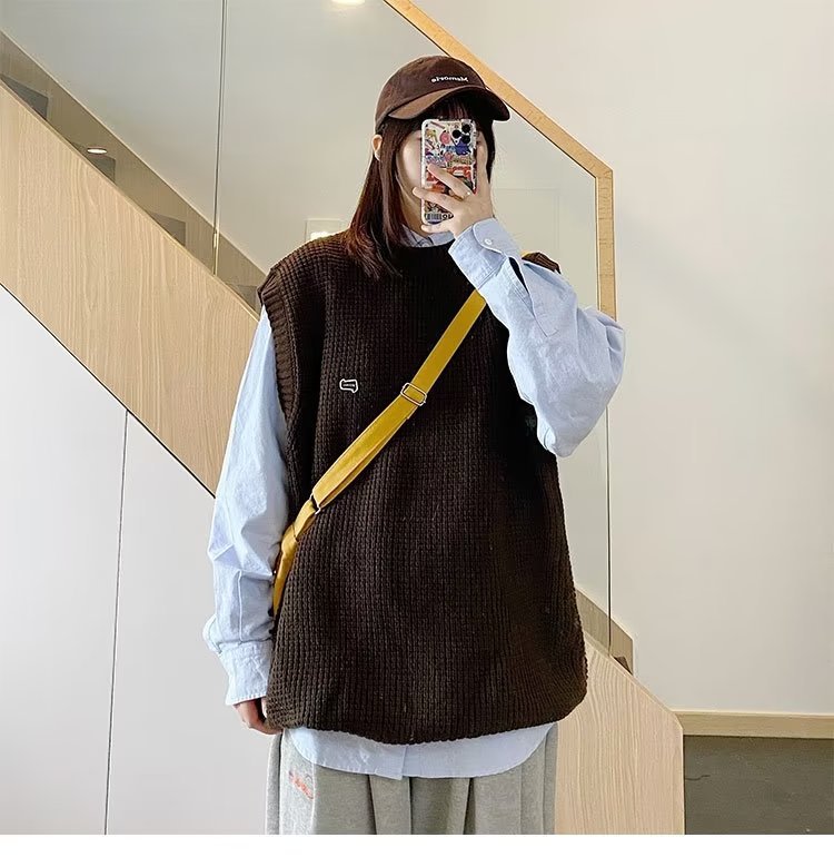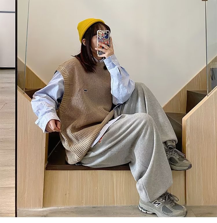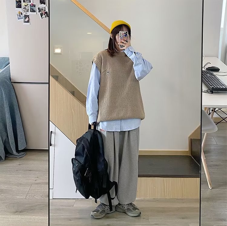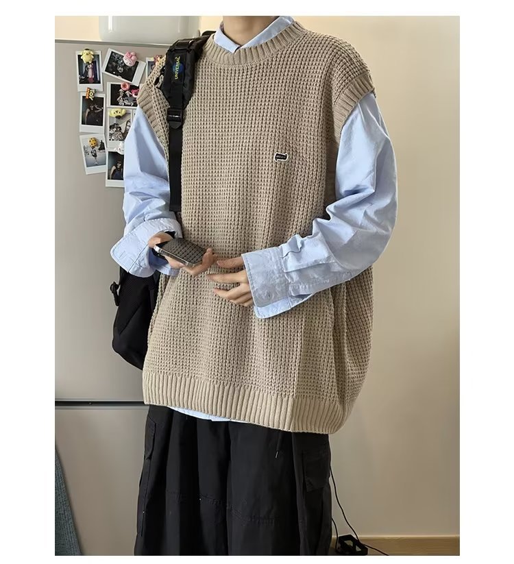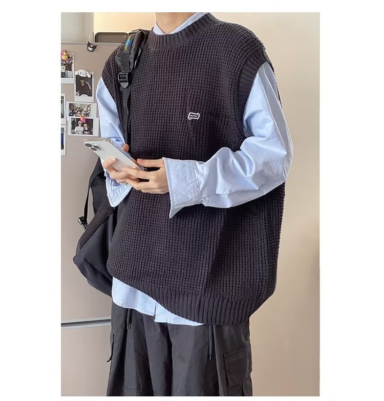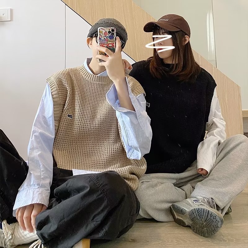 Mùa Thu Đông 2022 Phiên Bản Hàn Quốc Dáng Rộng Áo Len Dệt Kim Nam Giả Hai Mảnh Với Áo Sơ Mi Sọc Áo Len Khâu Hàng Đầu