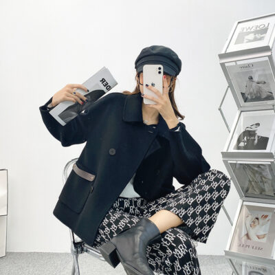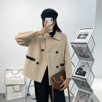 Mùa Thu Đông 2023 Mới Cổ Nhỏ Áo Khoác Dệt Kim Phiên Bản Hàn Quốc Dáng Rộng Kích Thước Lớn Giả Áo Khoác Len Cashmere 2 Mặt