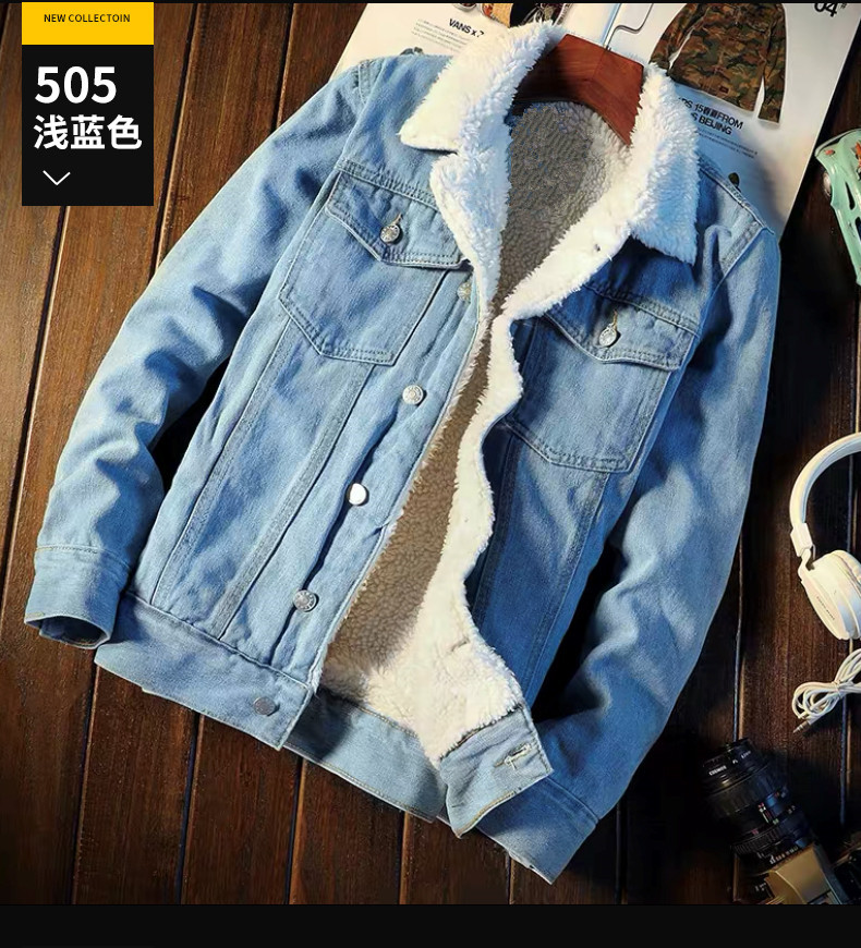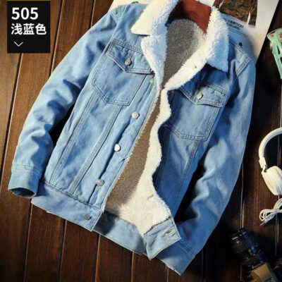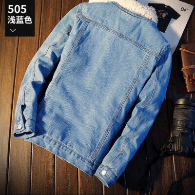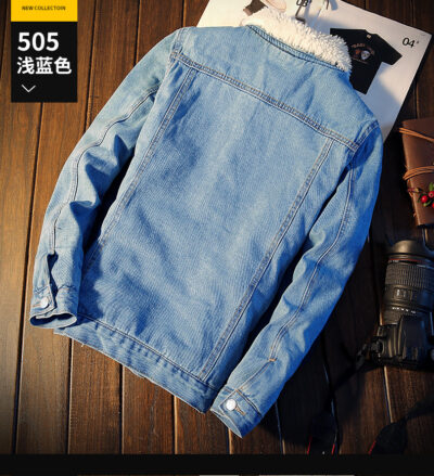 Mùa Thu Đông Áo Khoác Nỉ Denim Áo Khoác Nam Cotton Rời Size Lớn Thịt Cừu Nhung Hàn Quốc Dày Ấm Áo Khoác Cotton