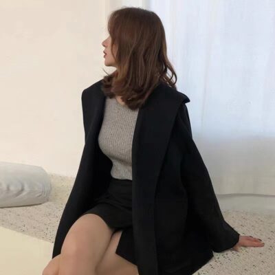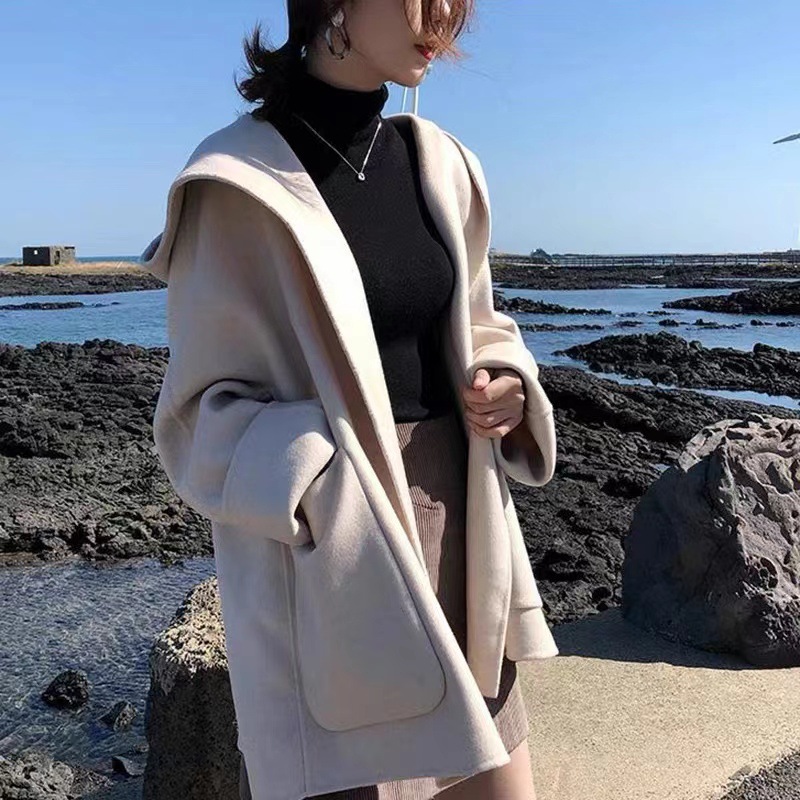 Mùa thu đông mới 2 mặt áo khoác len dáng ngắn nhỏ phong cách nước ngoài giảm tuổi dày phù hợp với rừng áo khoác len nữ