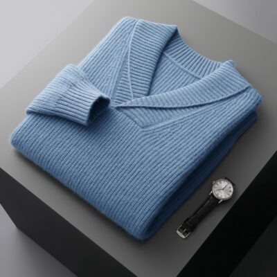 Mùa Thu Đông Mới Khăn Choàng Cổ Dày Nam Nguyên Chất Cashmere Chui Đầu Áo Len Công Sở Thời Trang Lớn Ve Áo Dệt Kim