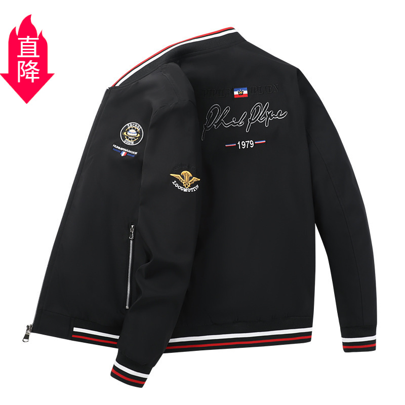 Mùa Thu Đông Mới Nam Ong Áo Khoác Mỏng Thời Trang Chất Lượng Cao Diện Tích Lớn Thêu Cổ Bóng Chày Áo Khoác