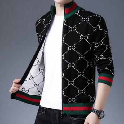 Mùa Thu Đông Nam Hàn Quốc Áo Len Cổ Đứng Nam Cardigan Dài Tay Thanh Niên Áo Len Phối Dây Kéo Rời