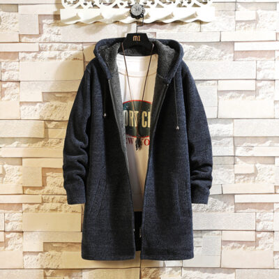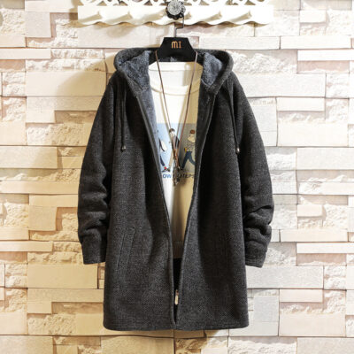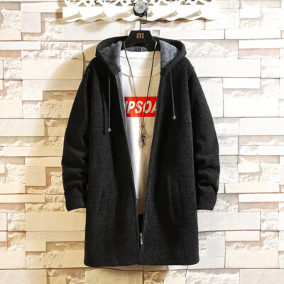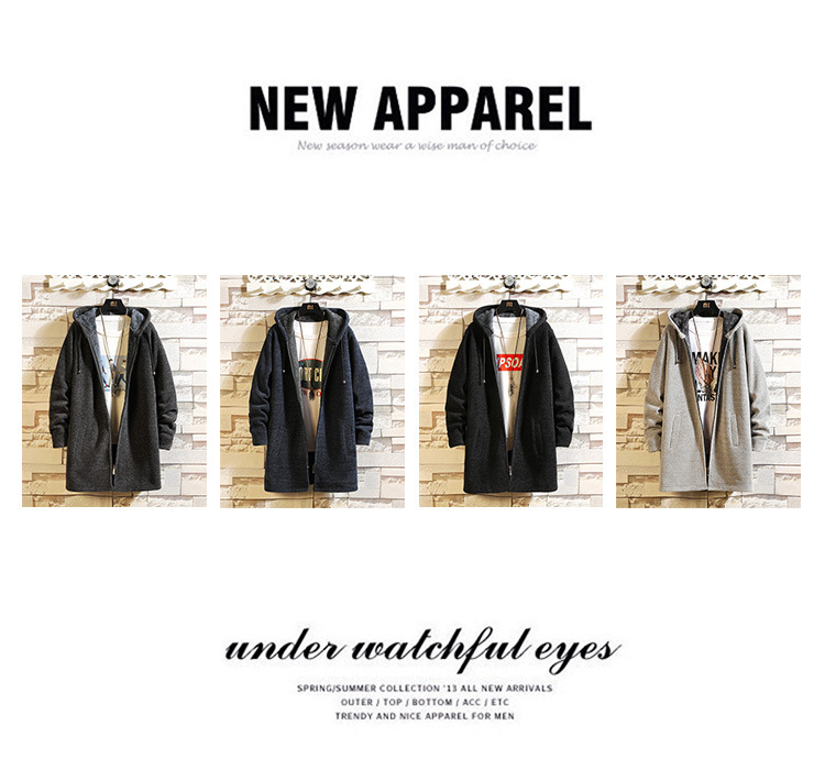 Mùa Thu Đông Nam Plus Nhung Dày Áo Len Nam Kích Thước Lớn Áo Gió Xu Hướng Thời Trang Dài Có Mũ Áo Khoác Nam