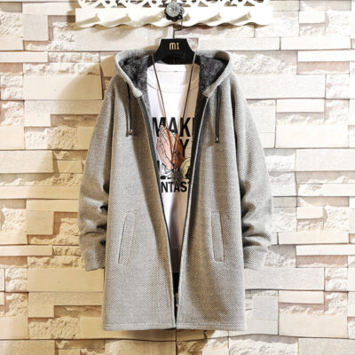 Mùa Thu Đông Nam Plus Nhung Dày Áo Len Nam Kích Thước Lớn Áo Gió Xu Hướng Thời Trang Dài Có Mũ Áo Khoác Nam