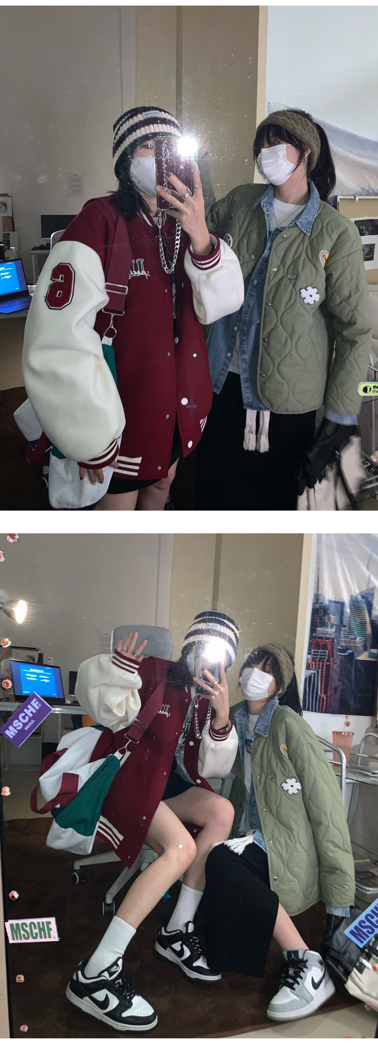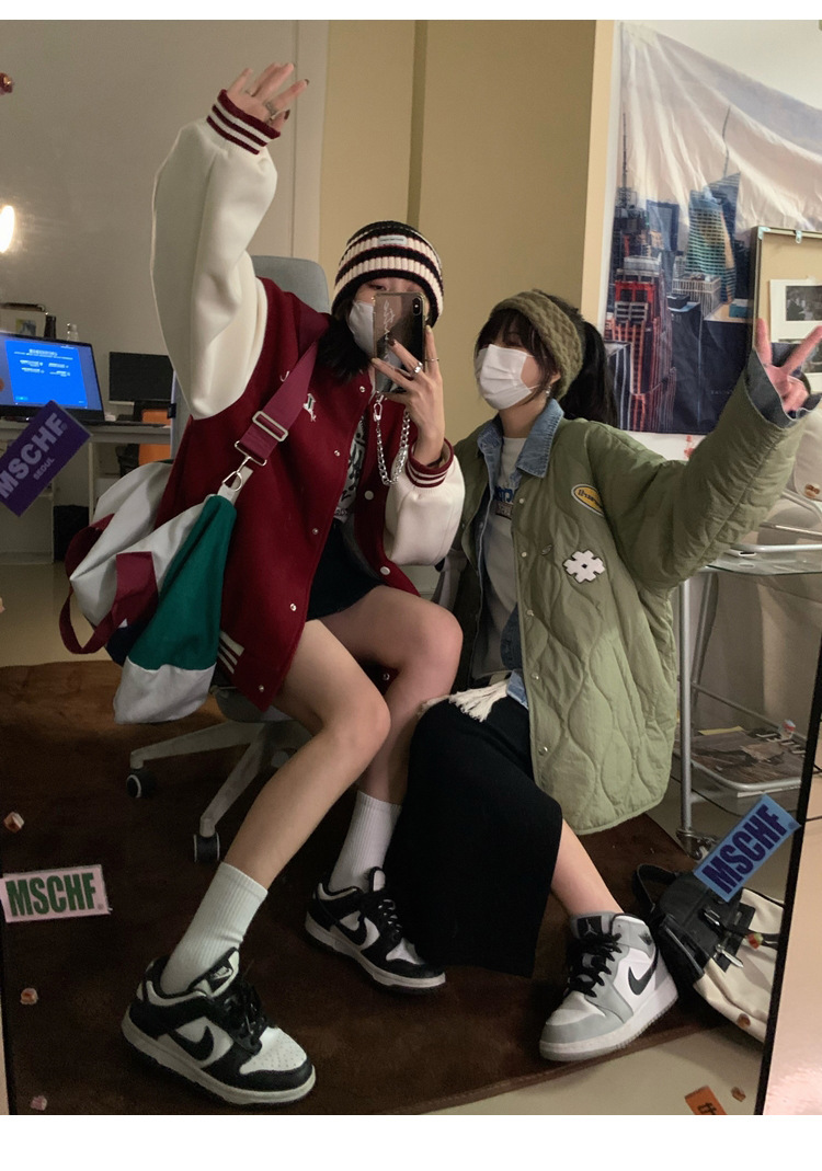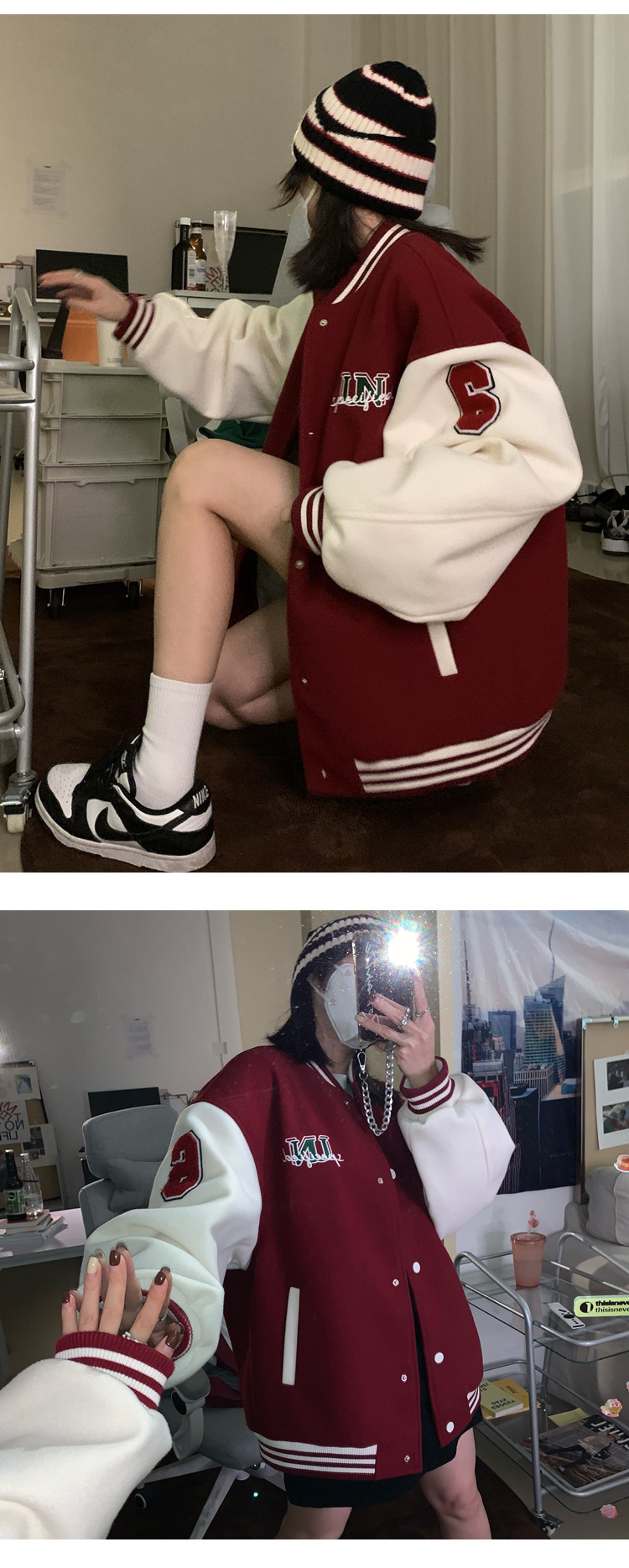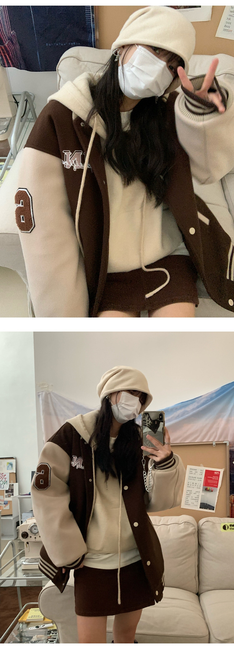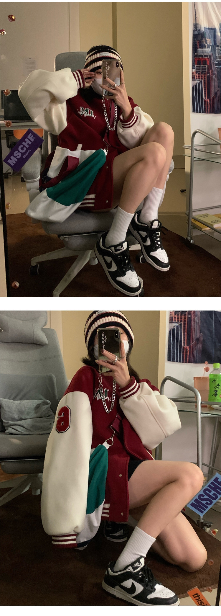 Mùa thu đông phong cách Mỹ mới rời thêu màu tương phản đồng phục bóng chày nữ Harajuku ins gió áo khoác học sinh áo khoác ngoài