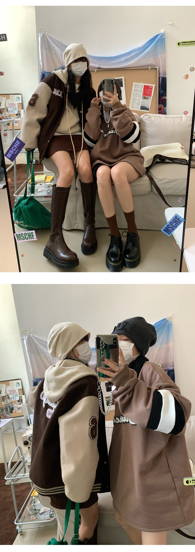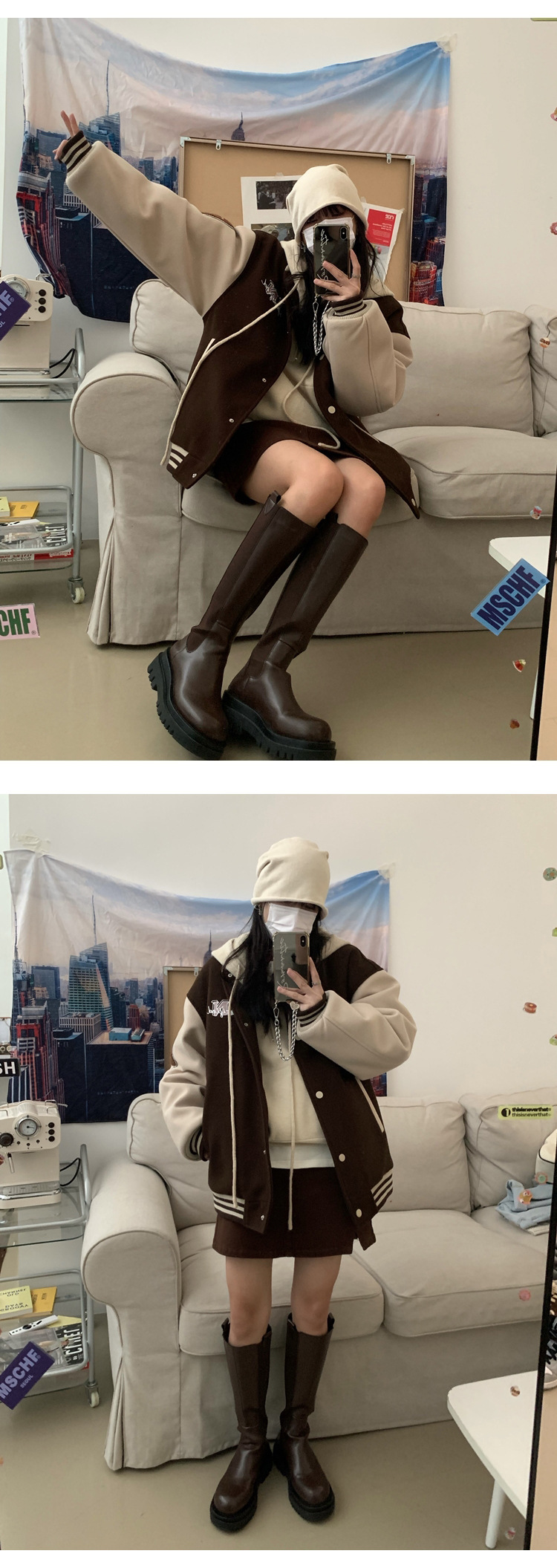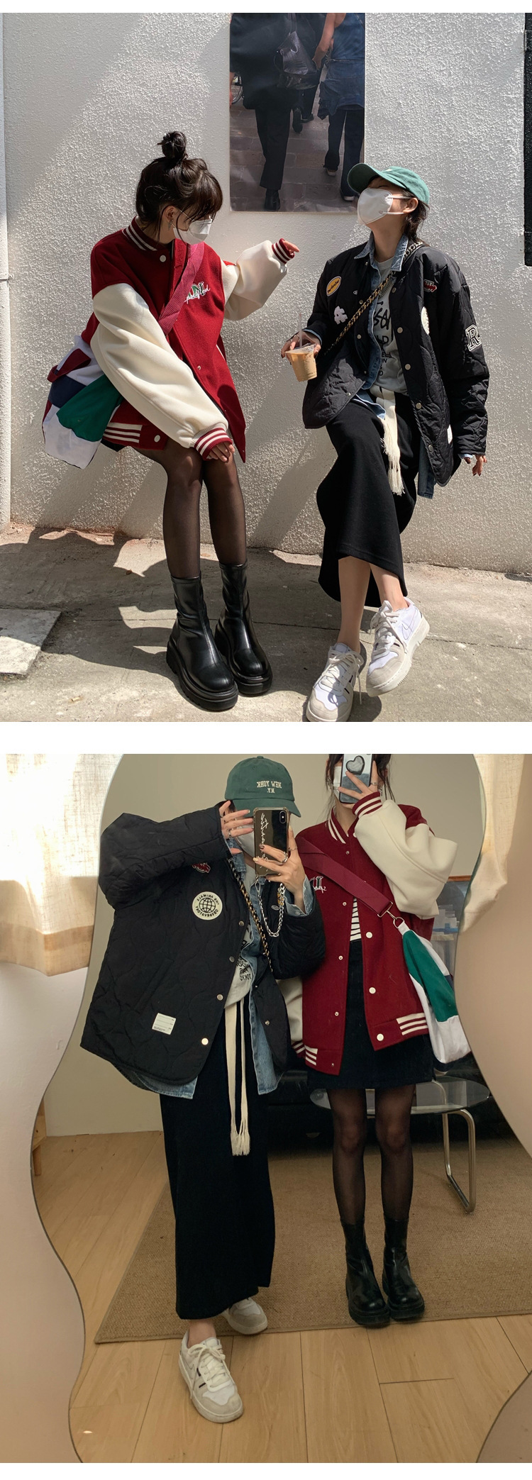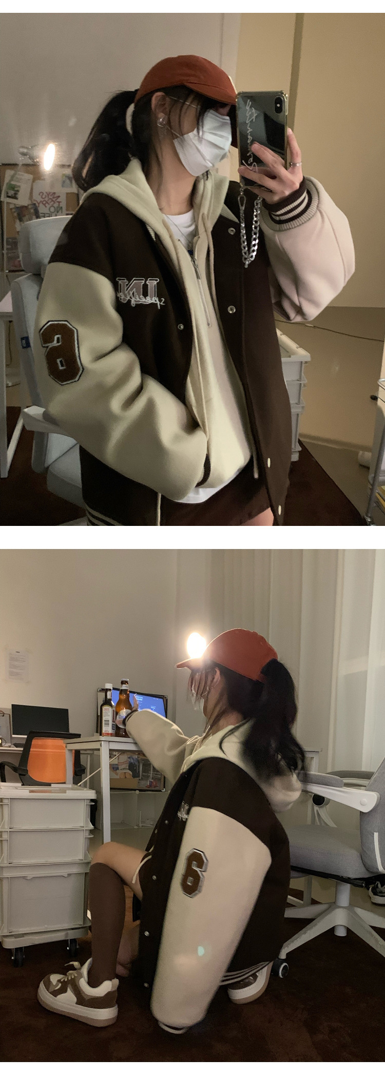 Mùa thu đông phong cách Mỹ mới rời thêu màu tương phản đồng phục bóng chày nữ Harajuku ins gió áo khoác học sinh áo khoác ngoài