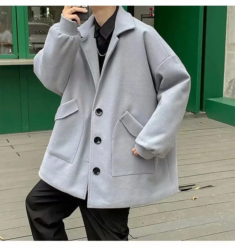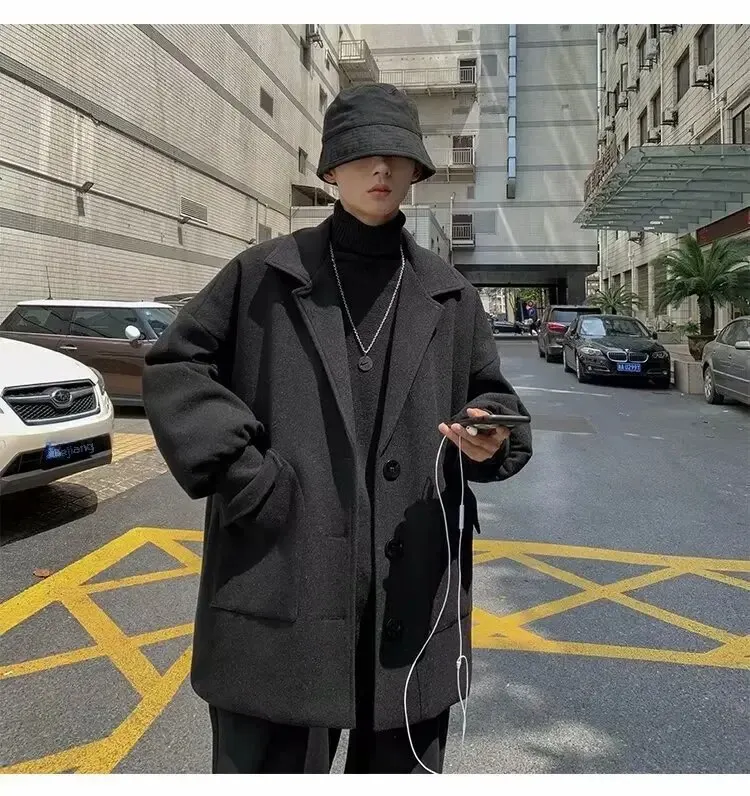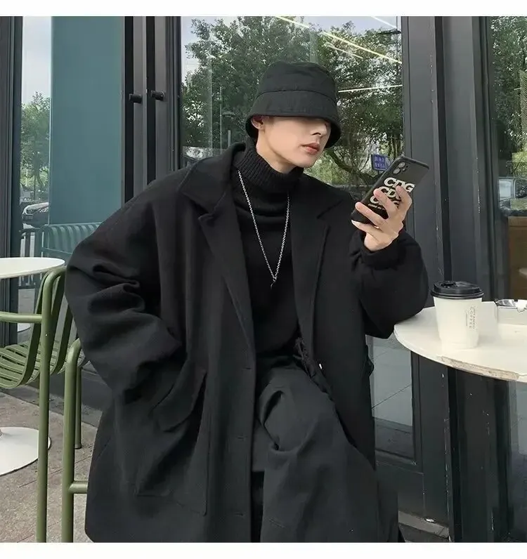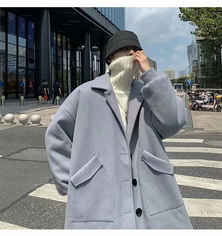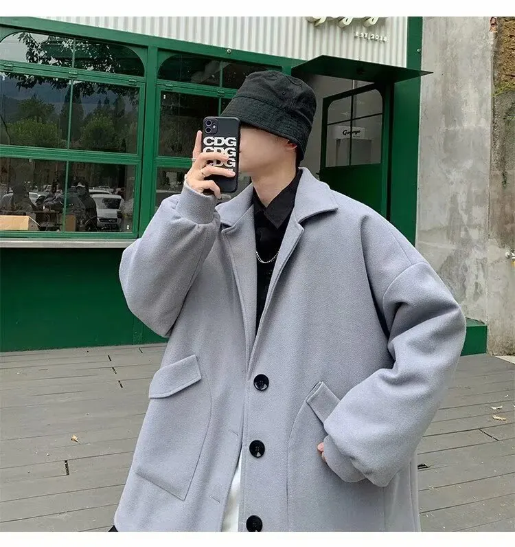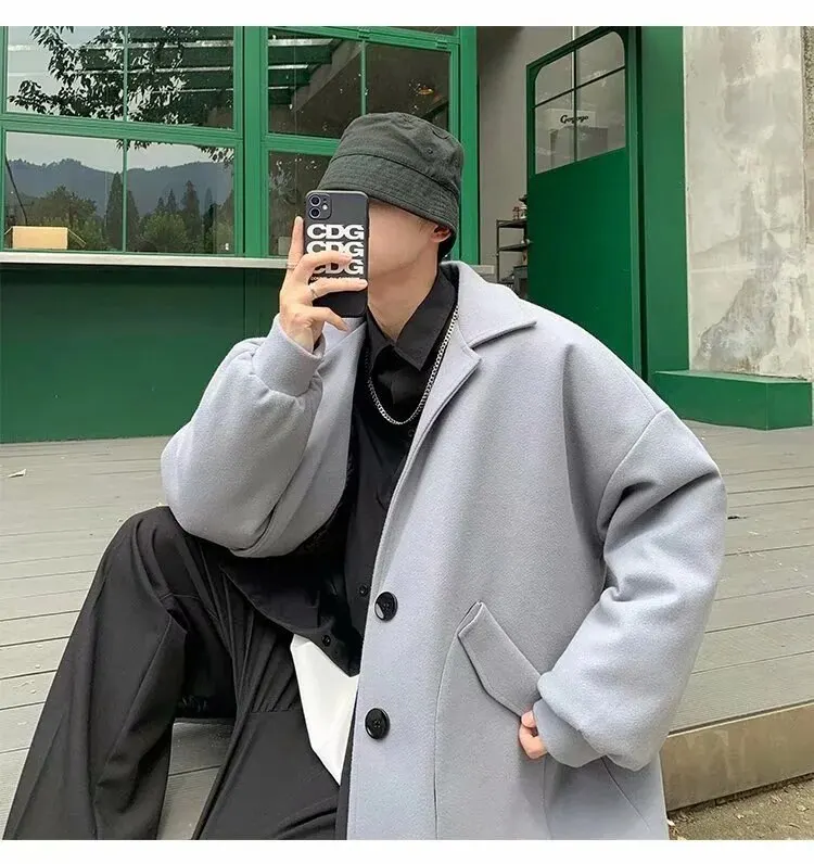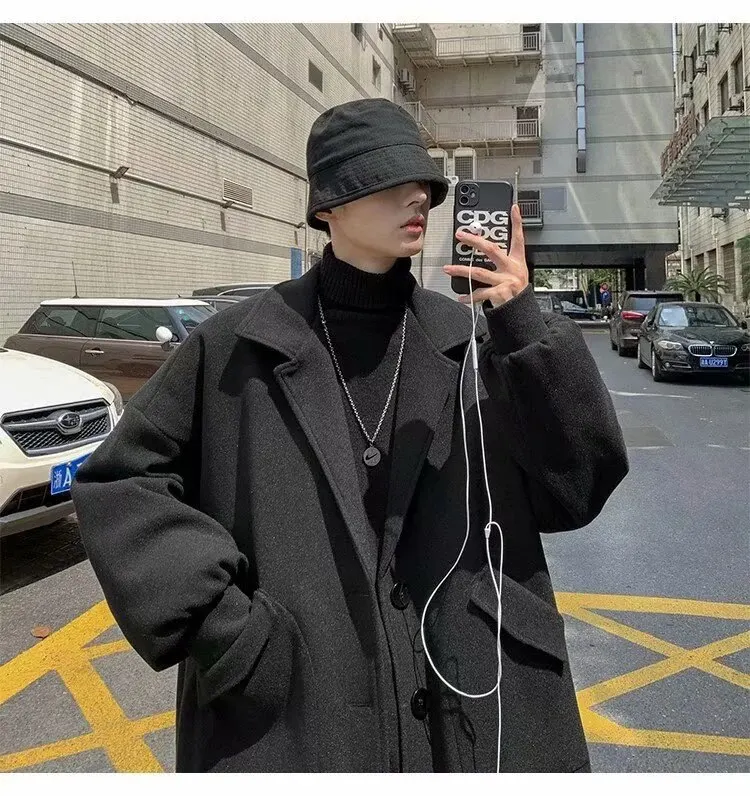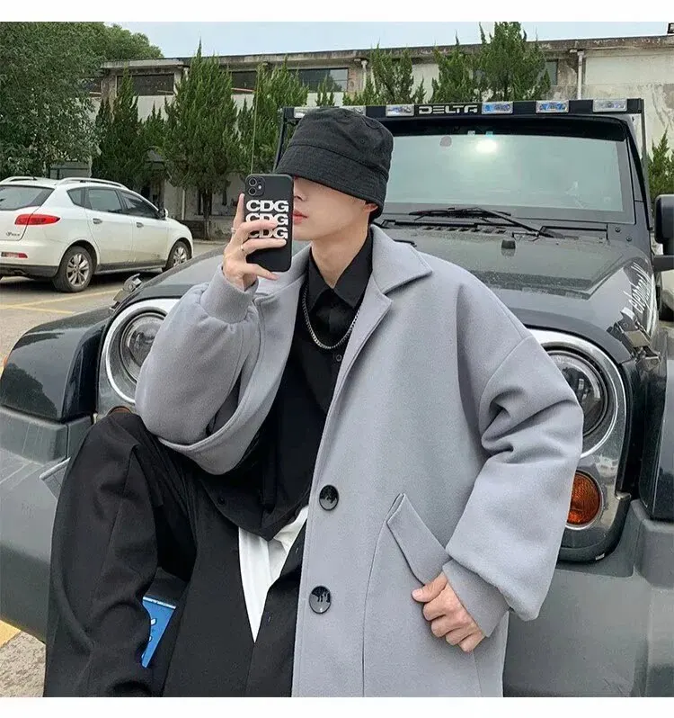Mùa Thu Đông Ren Định Áo Khoác Lớn Nam Hồng Kông Phong Cách Hợp Thời Trang Áo Rời Slim Fit Chiều Dài Trung Bình Gió Quần ÁoLoại: Lỏng Xuất xứ: Trung Quốc đại lục_x000D_