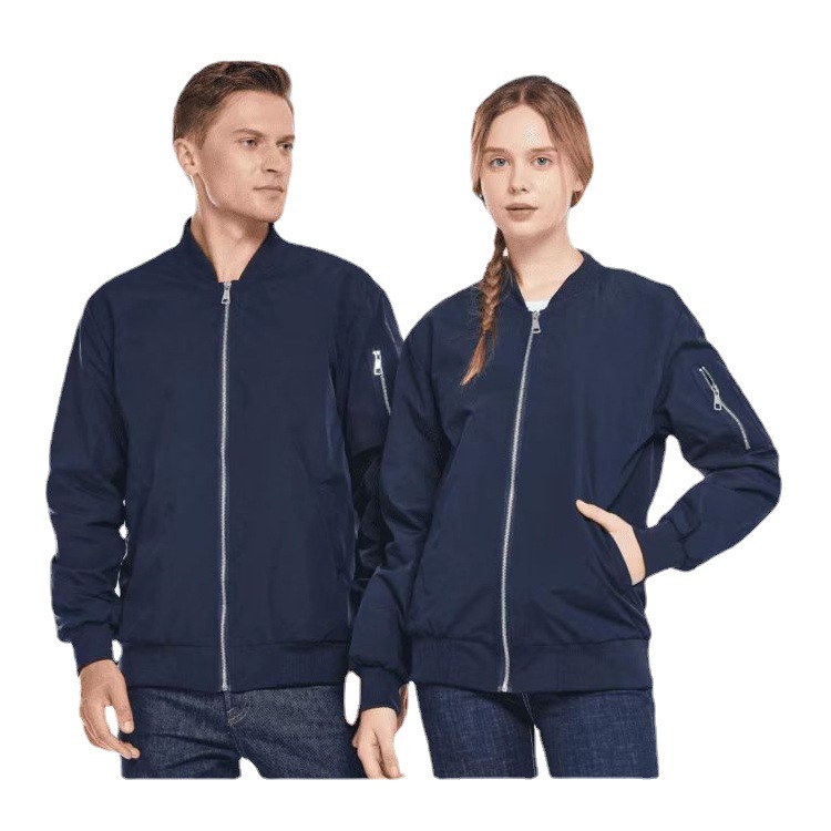 Mùa thu hợp thời trang thương hiệu áo khoác bay màu trơn áo gió cổ đứng nam nữ cùng kiểu làm đồng phục học sinh đồng phục nhóm dụng cụ in LOGO