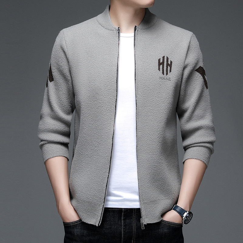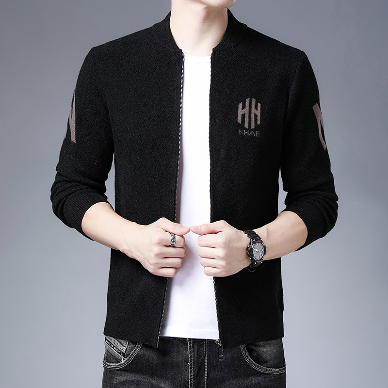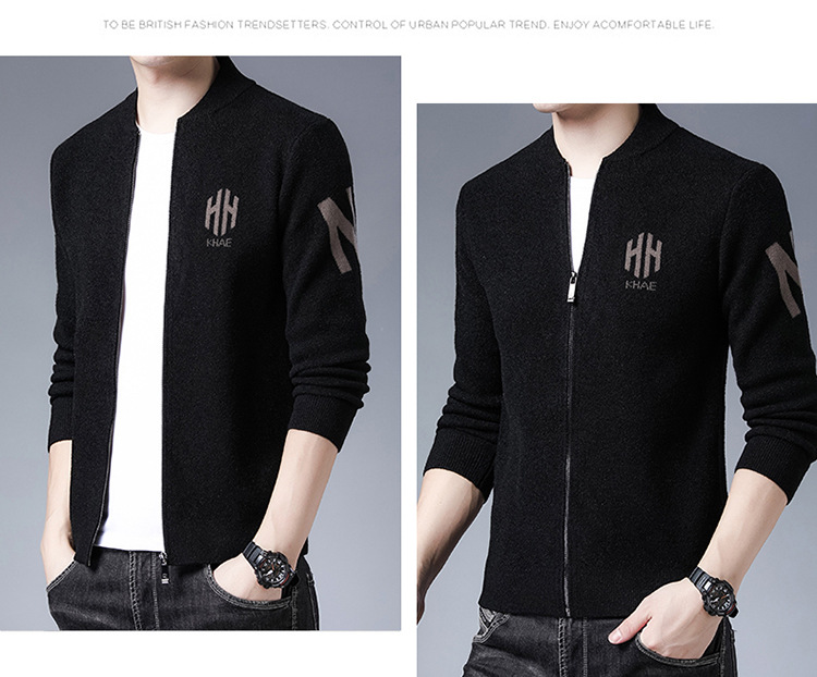 Mùa Thu Mới Áo Len Nam Phối Thời Trang Bóng Chày Cổ Rời Cổ Áo Khoác Ngoài Dệt Kim Cardigan Nam Bán Buôn