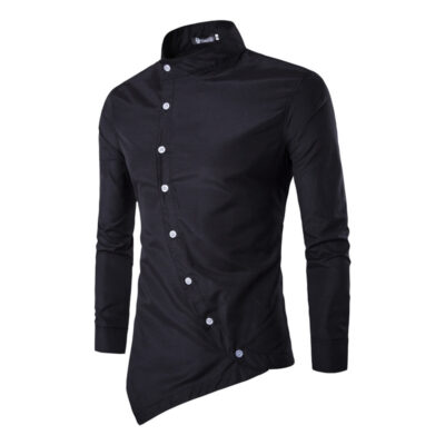 Mùa thu và mùa đông AliExpress thương mại nước ngoài mới của nam giới slim-fit áo sơ mi với túi xéo nhỏ cổ áo đứng dài tay đồng màu không ủi áo sơ mi