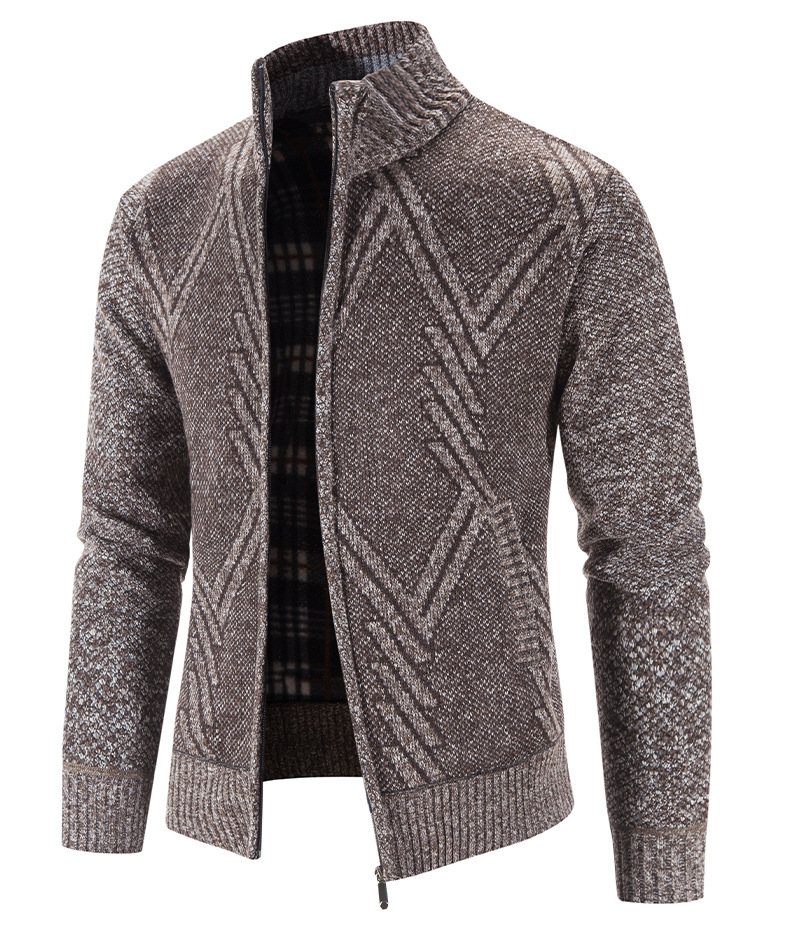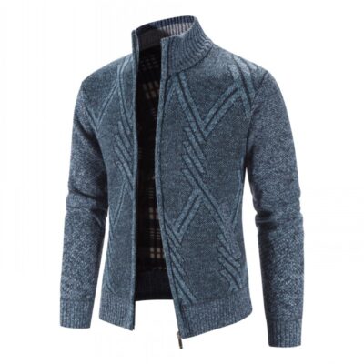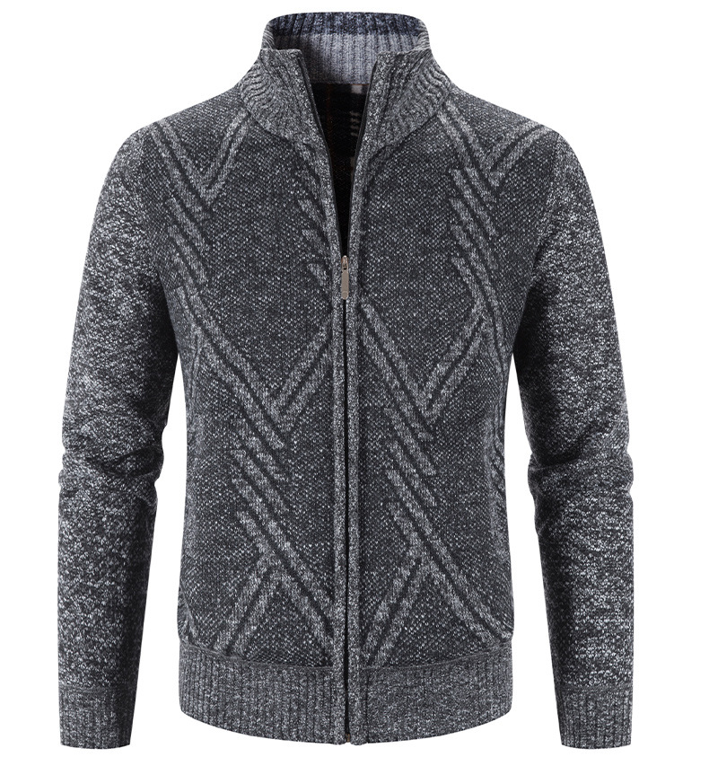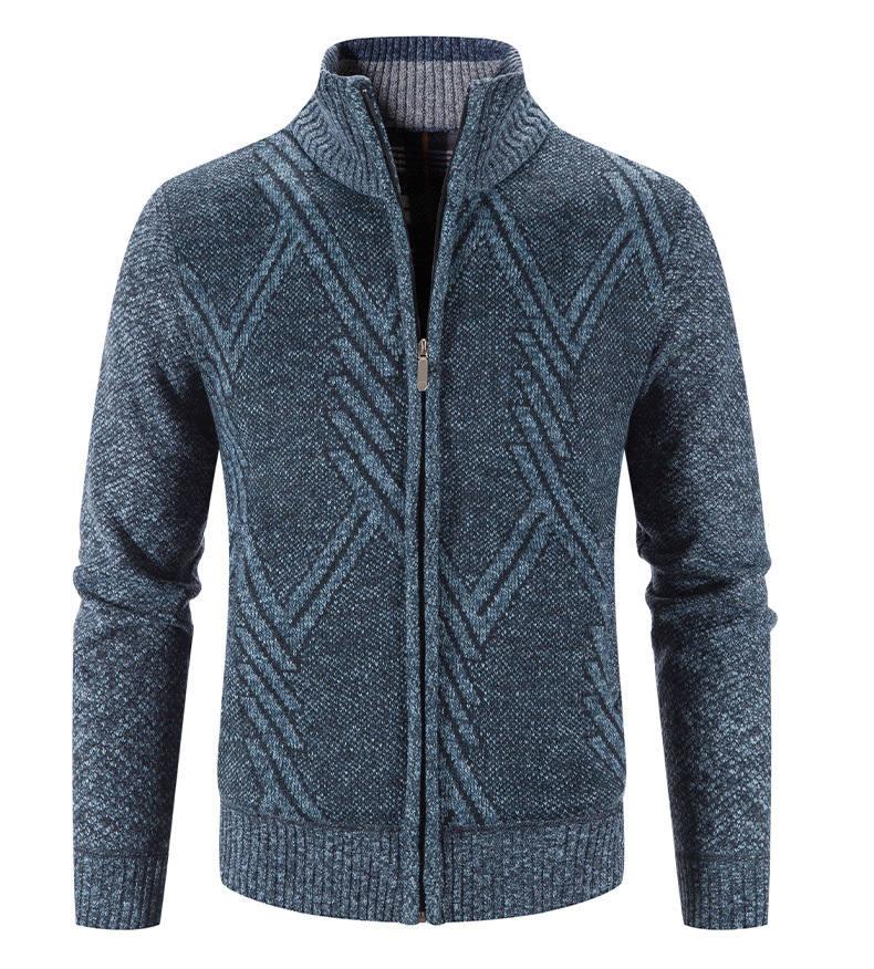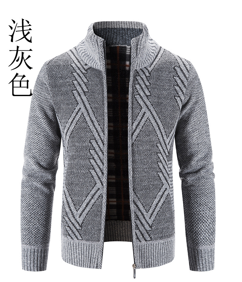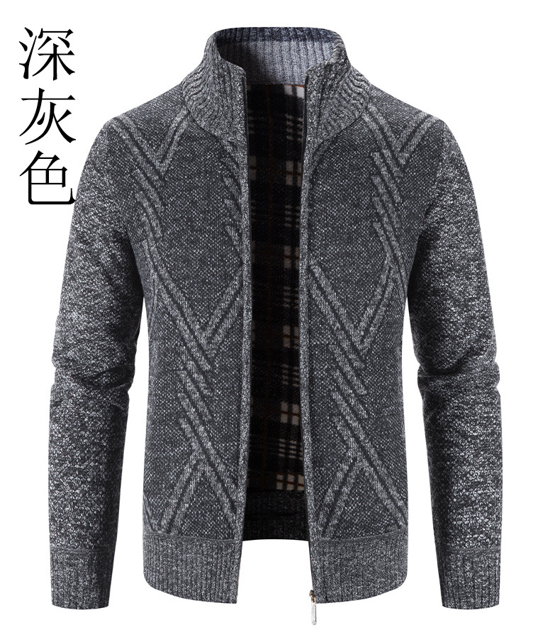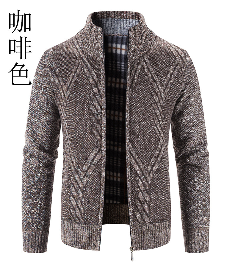 Mùa thu và mùa đông cộng với nhung dày dệt kim áo len nam áo nam kích thước lớn áo len cardigan nam cổ áo đứng giản dị áo khoác nam