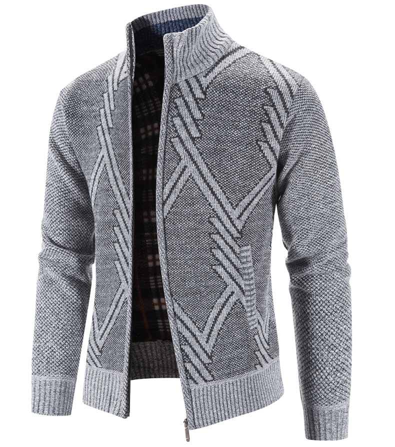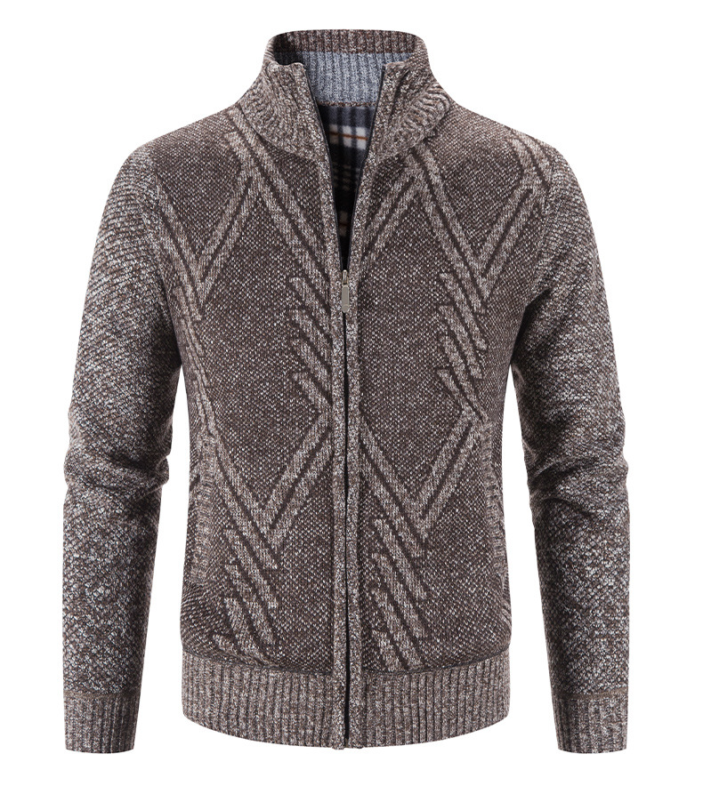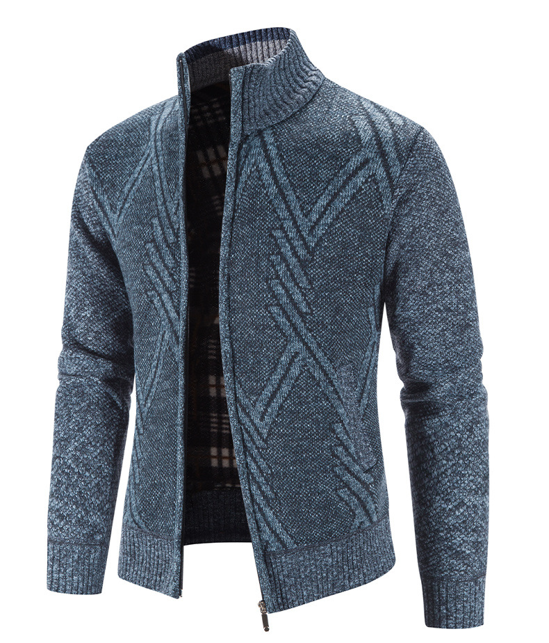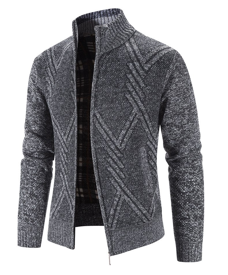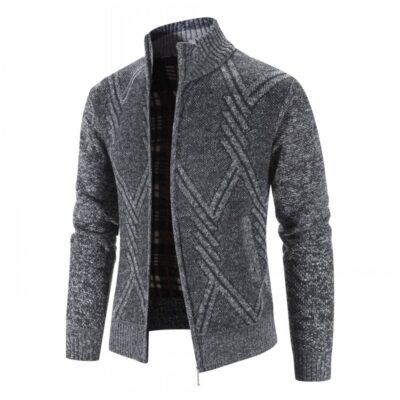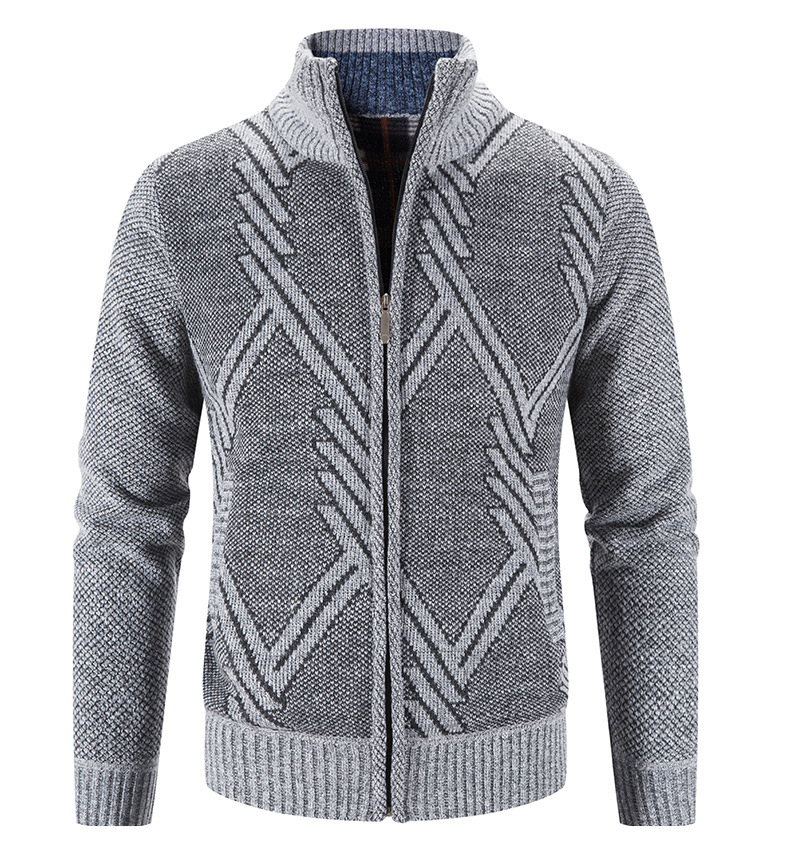 Mùa thu và mùa đông cộng với nhung dày dệt kim áo len nam áo nam kích thước lớn áo len cardigan nam cổ áo đứng giản dị áo khoác nam