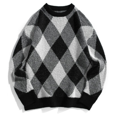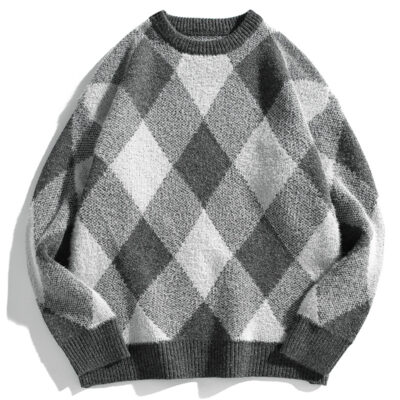 Mùa thu và mùa đông làm dày áo dệt kim nam phong cách Hồng Kông mùa đông dáng rộng giản dị cổ tròn họa tiết hoa văn xu hướng ins áo len