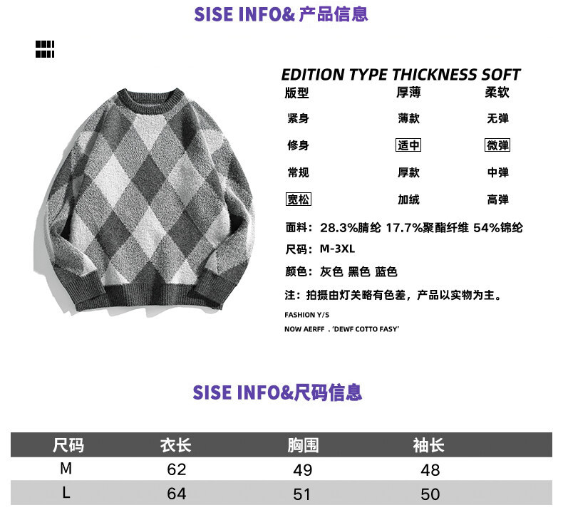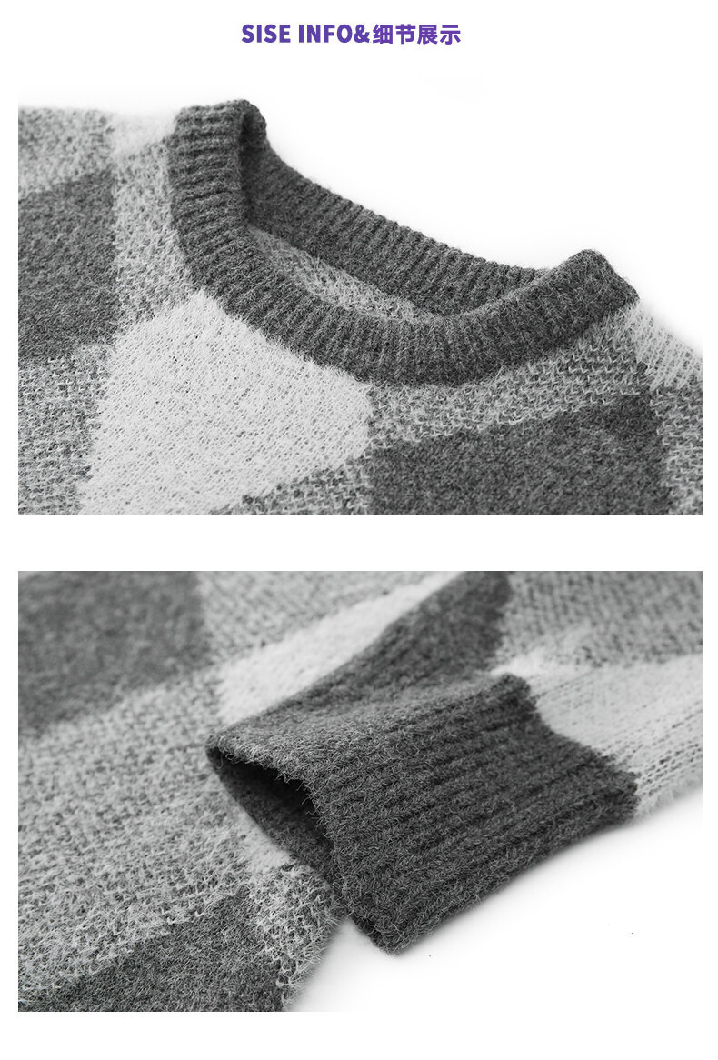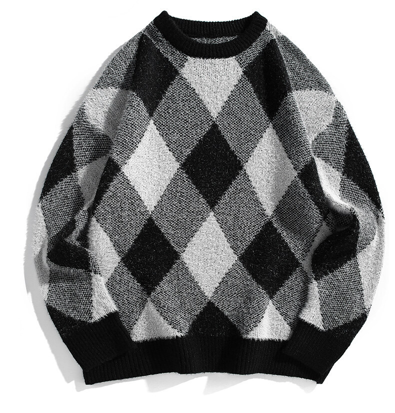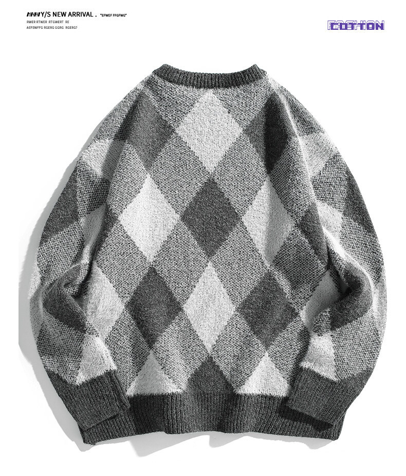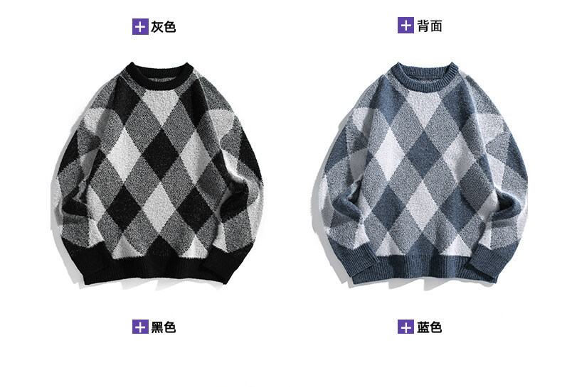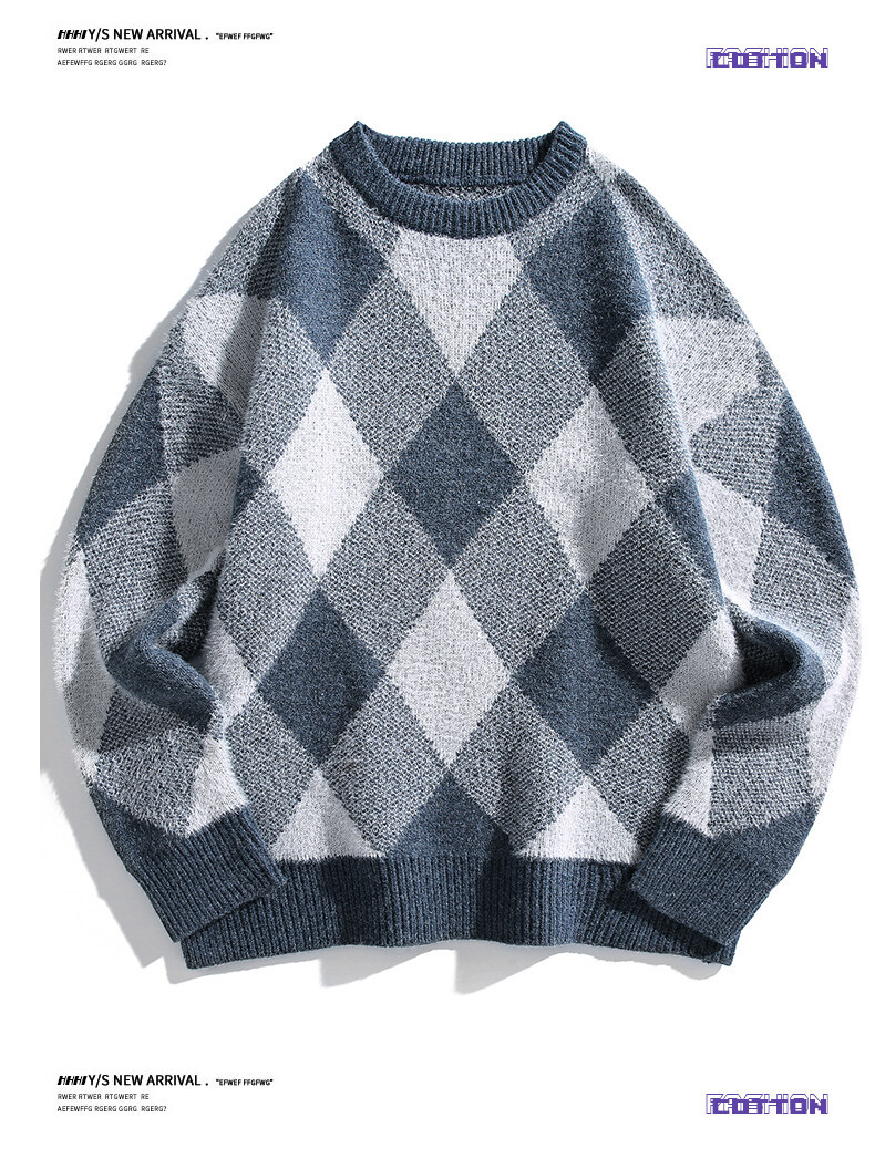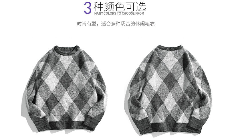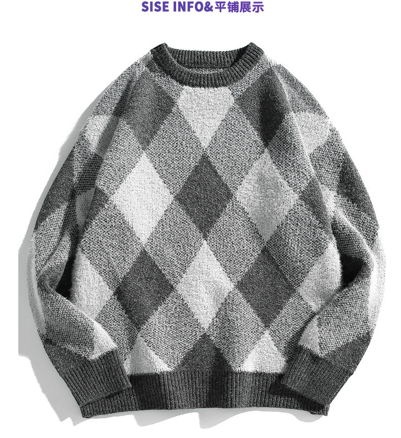 Mùa thu và mùa đông làm dày áo dệt kim nam phong cách Hồng Kông mùa đông dáng rộng giản dị cổ tròn họa tiết hoa văn xu hướng ins áo len