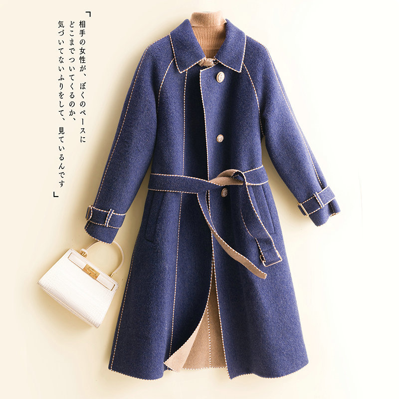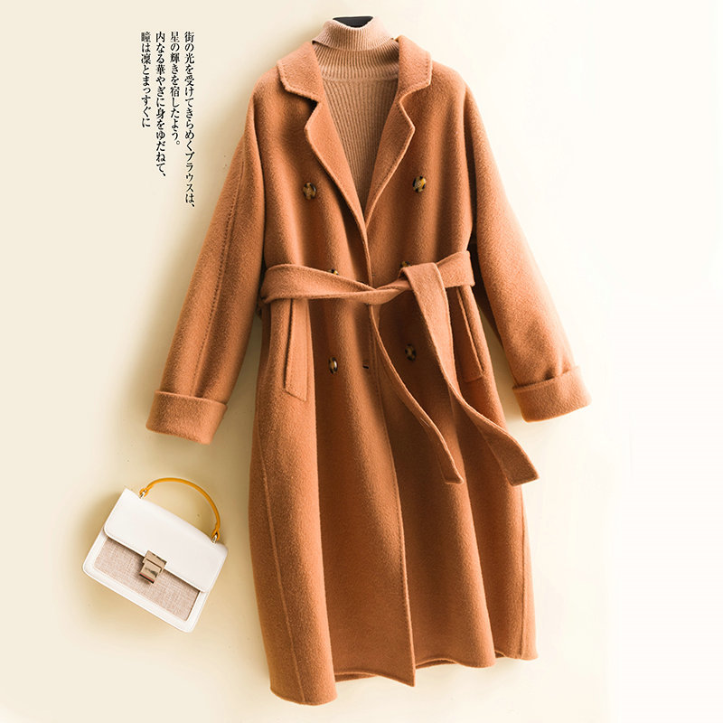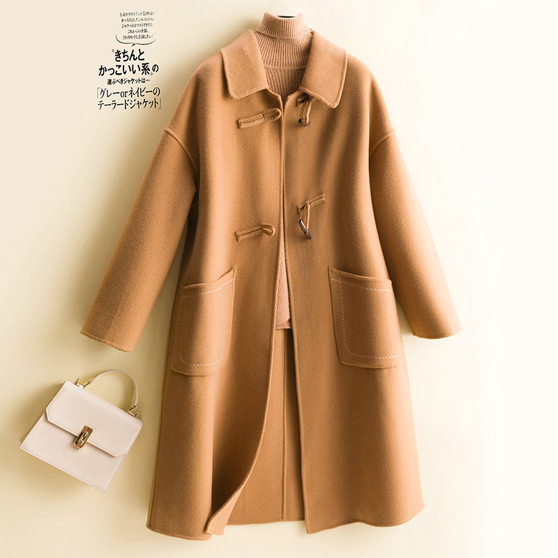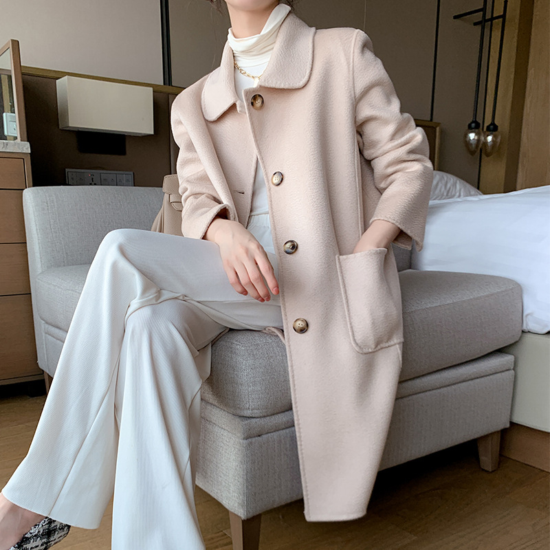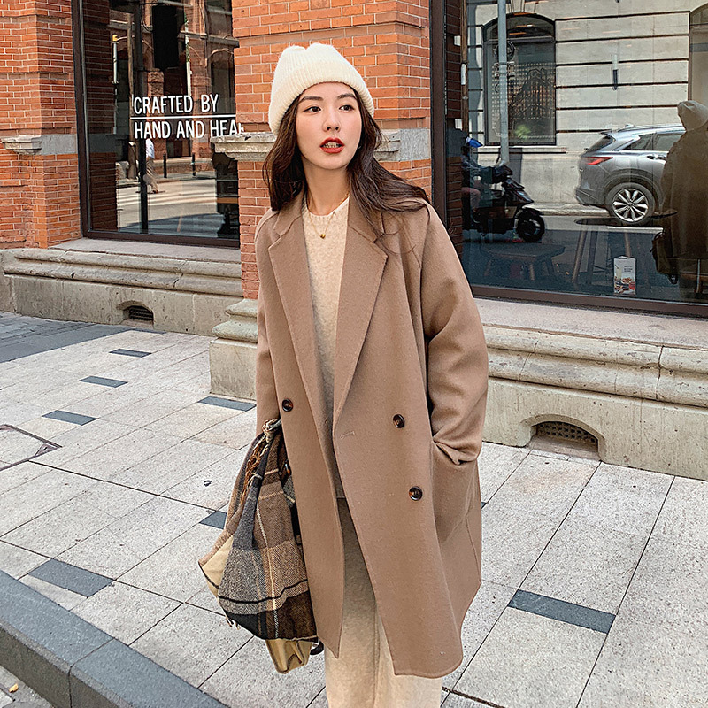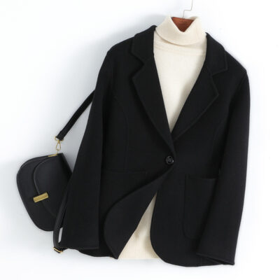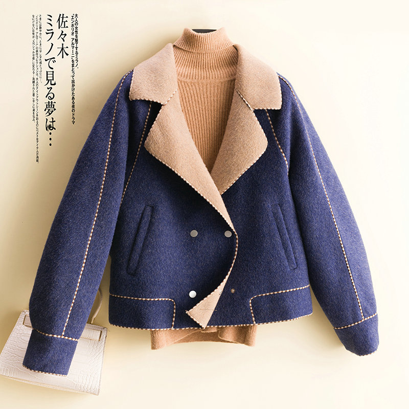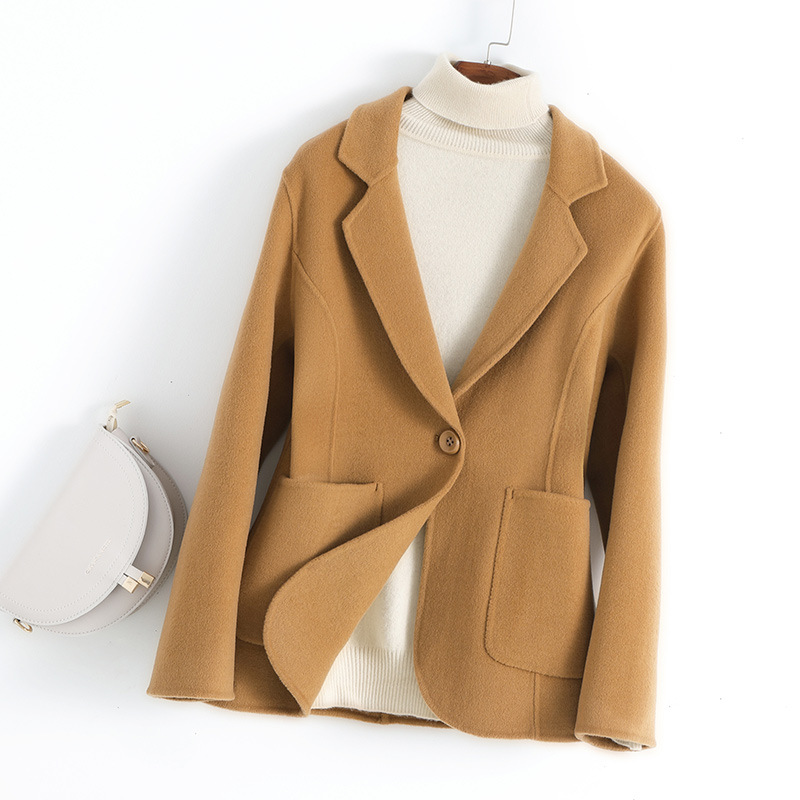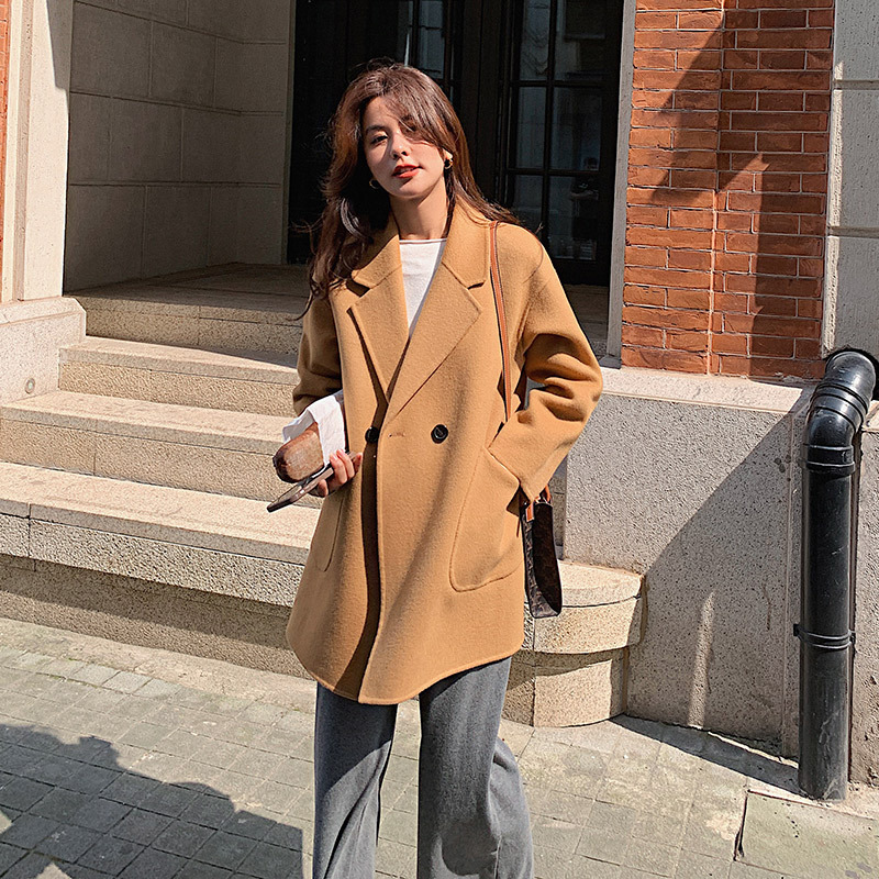 Mùa thu và mùa đông mới áo khoác len cashmere hai mặt ngắn của phụ nữ phong cách Hàn Quốc mỏng phù hợp với cổ áo len áo khoác len