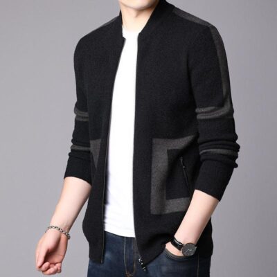 Mùa thu và mùa đông mới áo khoác nam giả nhung chồn dây kéo cardigan cổ áo bóng chày dày dệt kim áo khoác nam quần áo nam giản dị