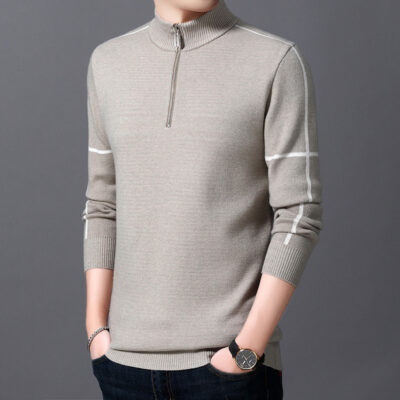 Mùa thu và mùa đông mới áo len dệt kim áo len dày cho nam trung niên và thanh niên dài tay sơ mi có đáy giản dị áo sơ mi dây kéo cổ tròn nửa cao