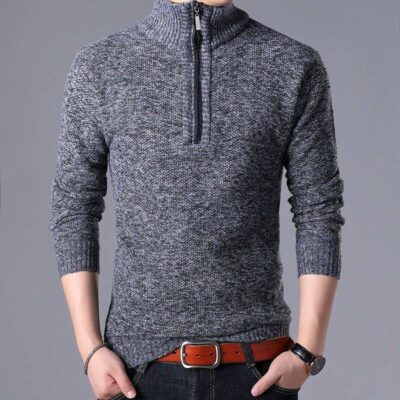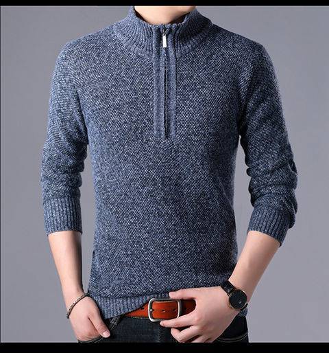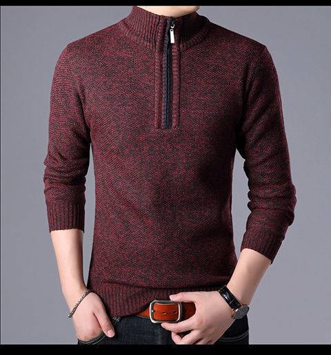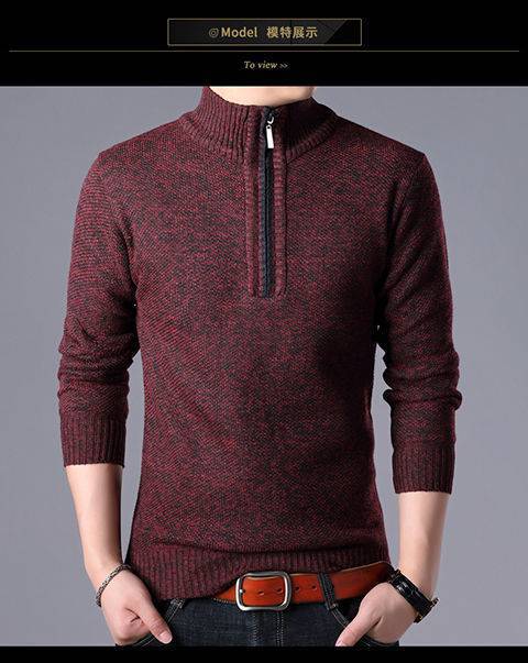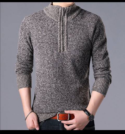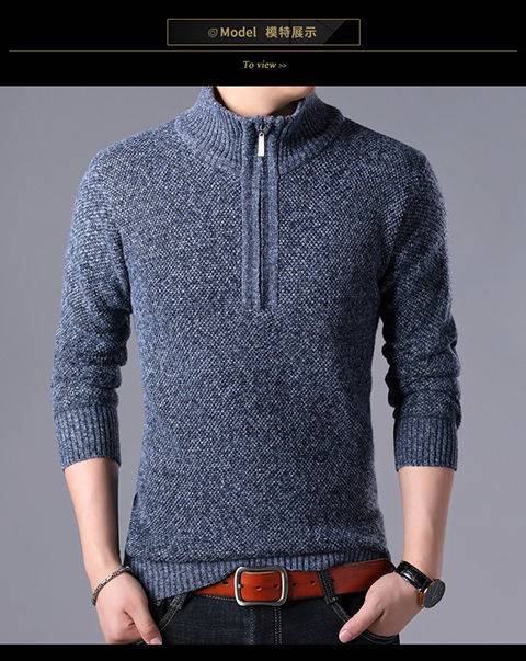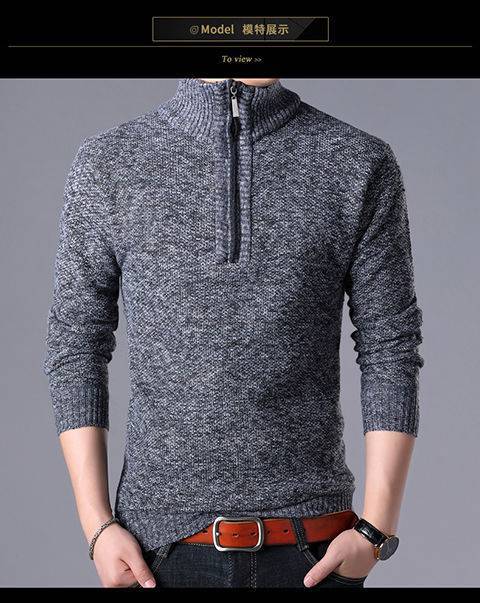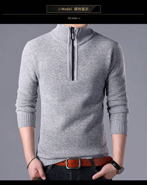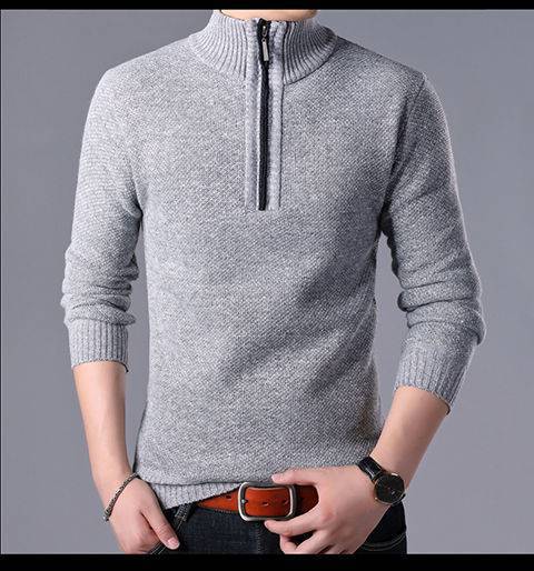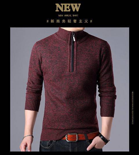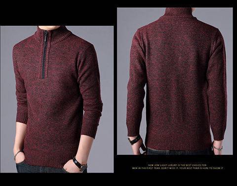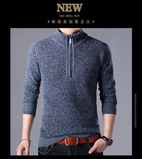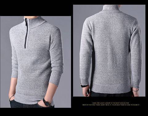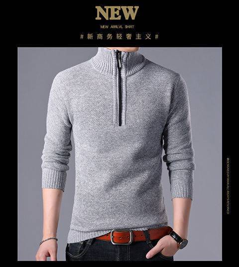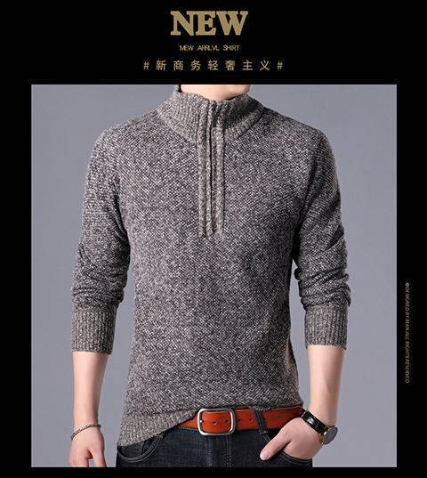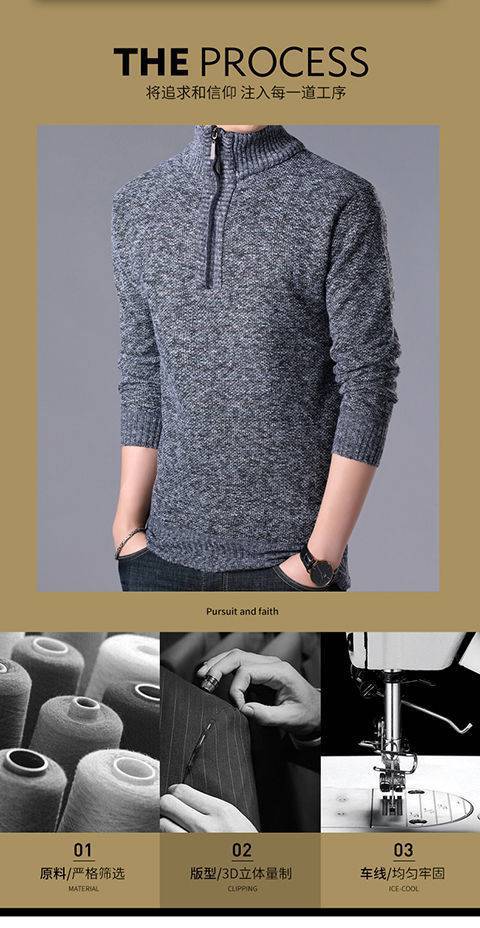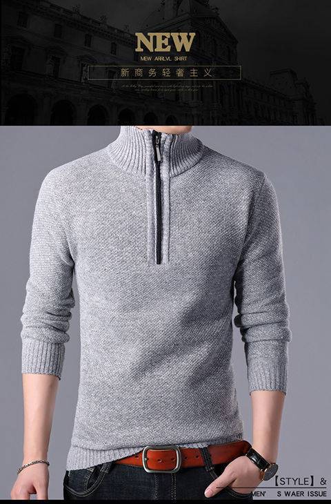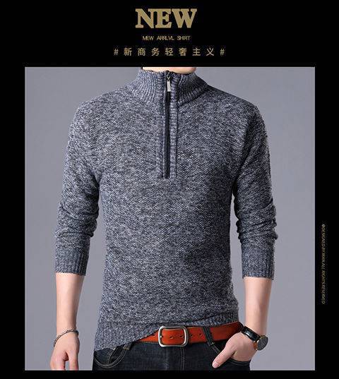 Mùa thu và mùa đông thương hiệu hợp thời trang mới hợp thời trang áo len dệt kim nam nửa cao cổ có khóa kéo áo len giản dị mỏng phù hợp với tất cả các trận đấu quần áo nam đẹp trai