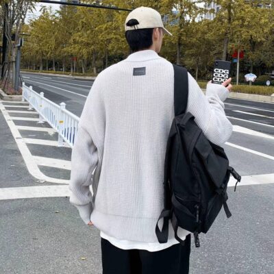 Mùa thu và mùa đông xu hướng phong cách Hồng Kông mới của nam giới cặp đôi áo len cardigan áo khoác cổ đứng dáng rộng áo len thể thao giản dị