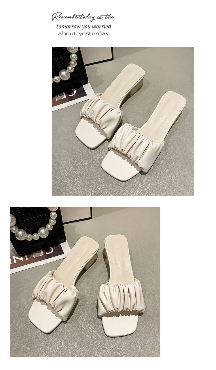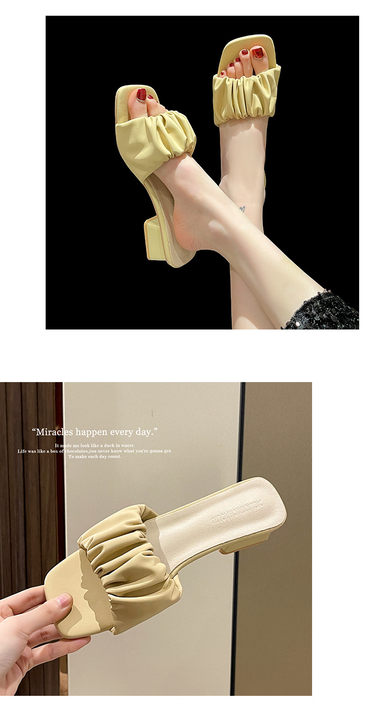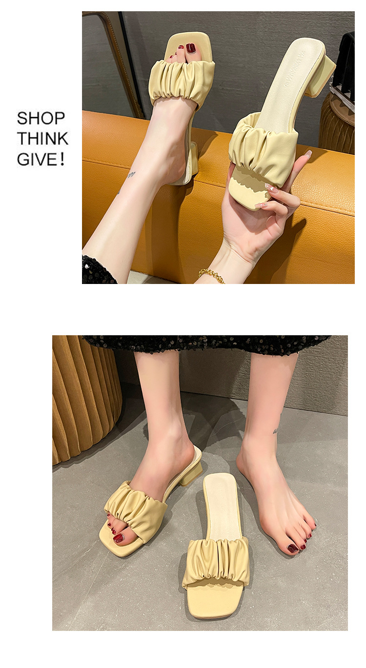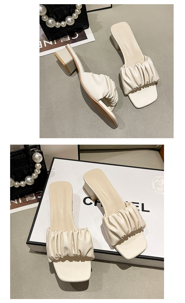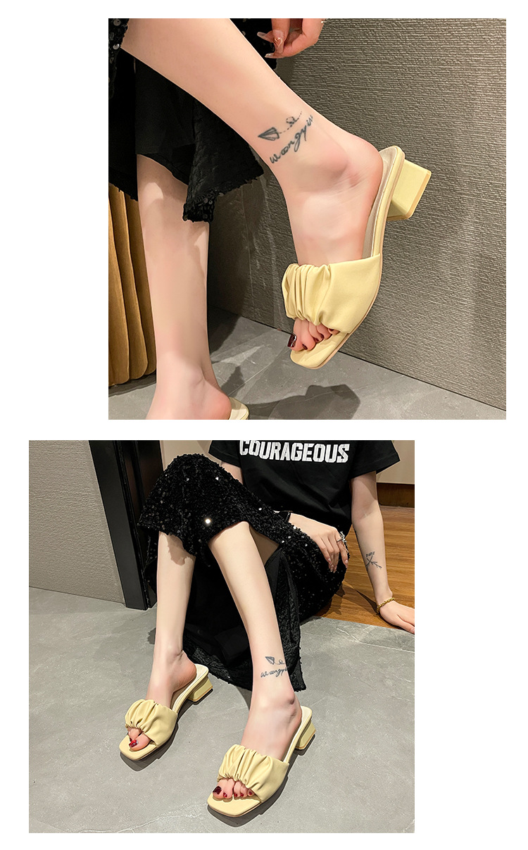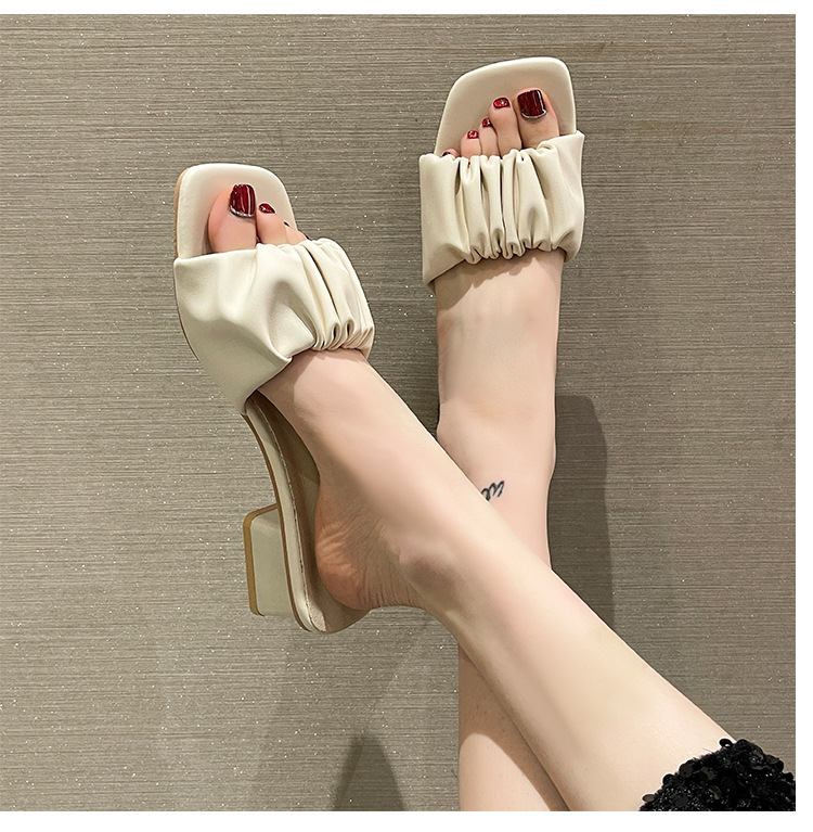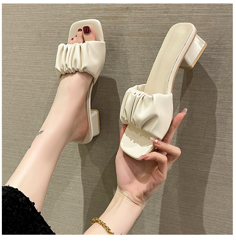 Mùa xuân hè 2023 giày cao gót nữ đầu vuông giày lười hỗ trợ nửa thời trang áo khoác ngoài xếp ly thời trang xăng đan nữ
