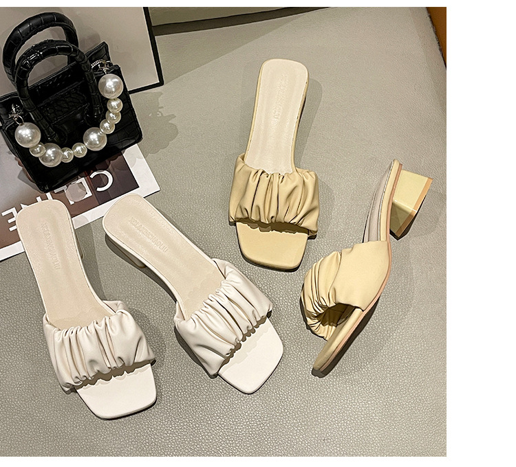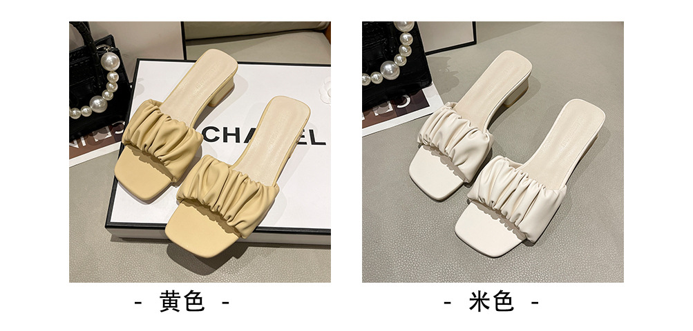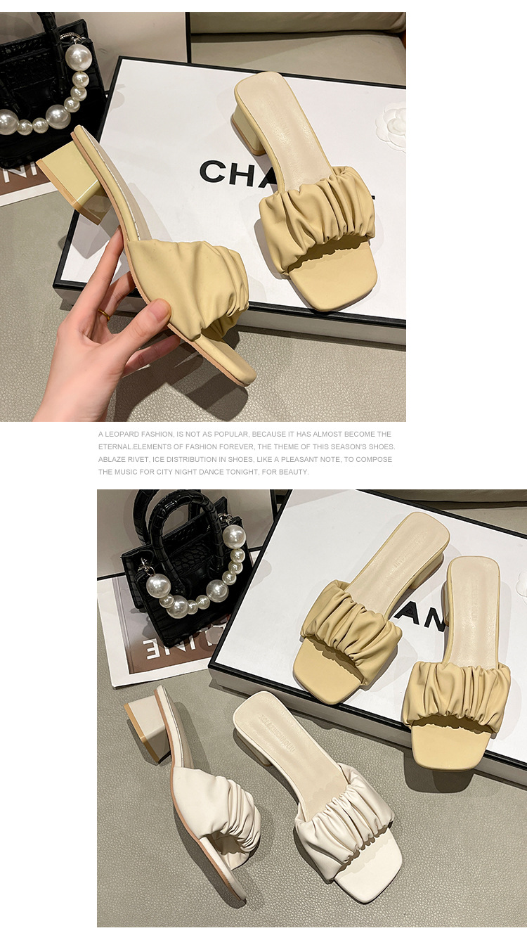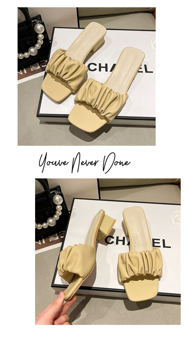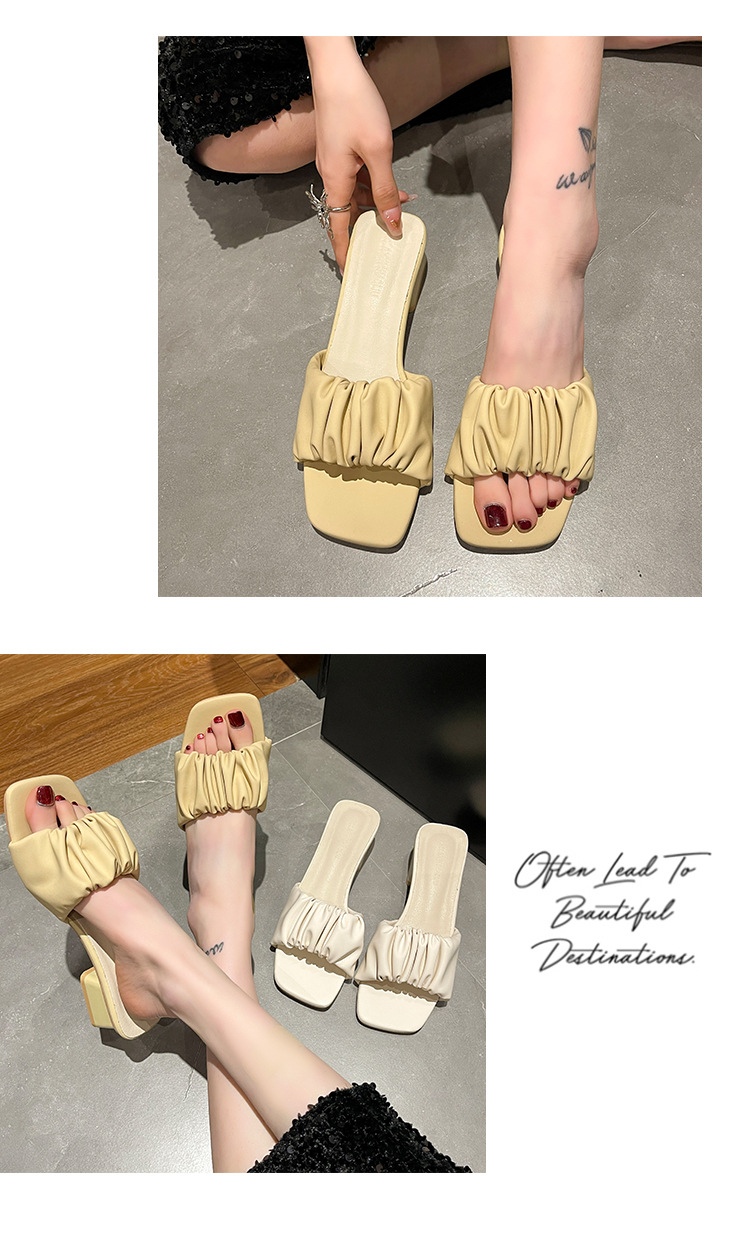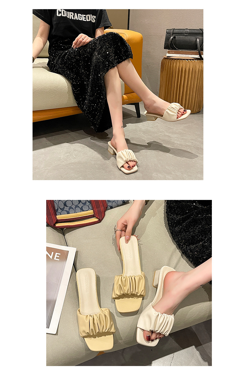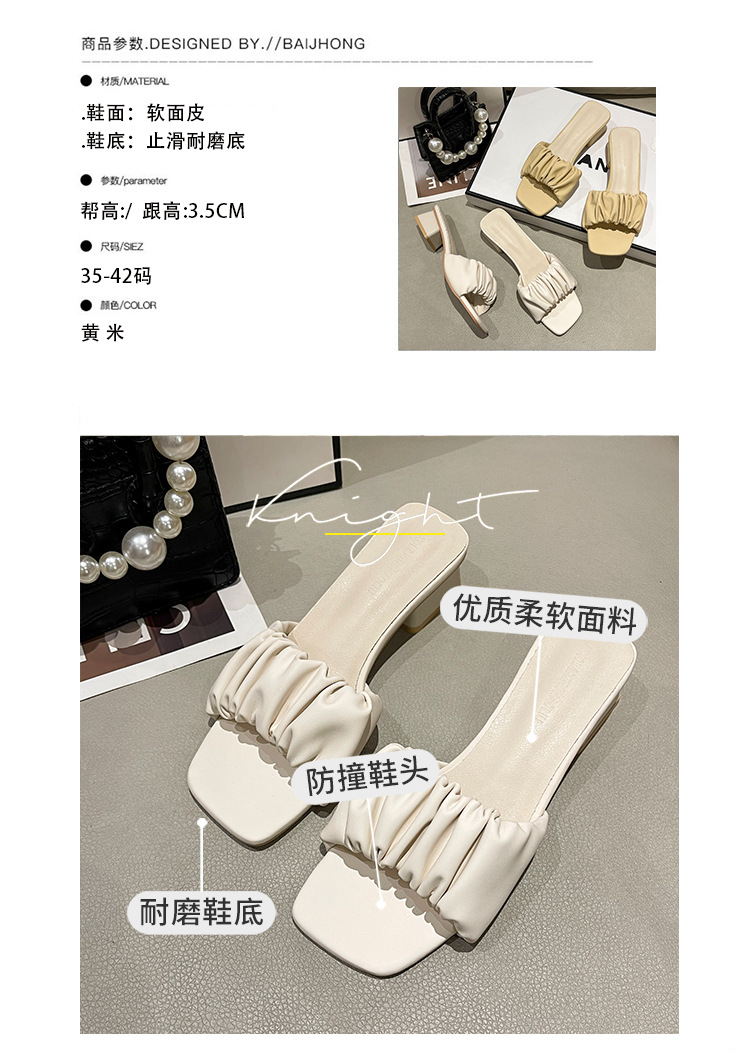 Mùa xuân hè 2023 giày cao gót nữ đầu vuông giày lười hỗ trợ nửa thời trang áo khoác ngoài xếp ly thời trang xăng đan nữ