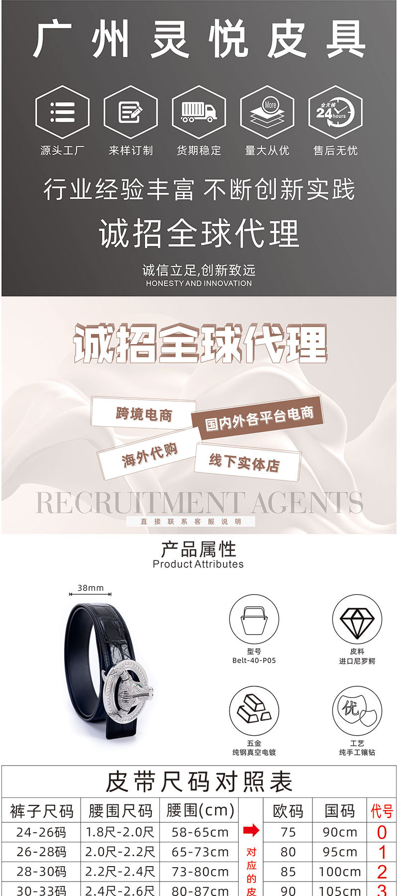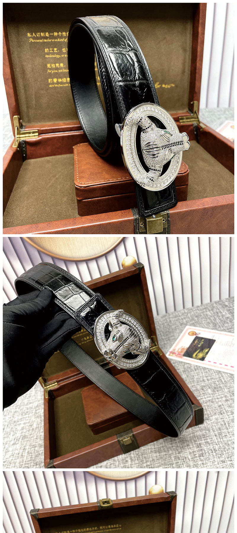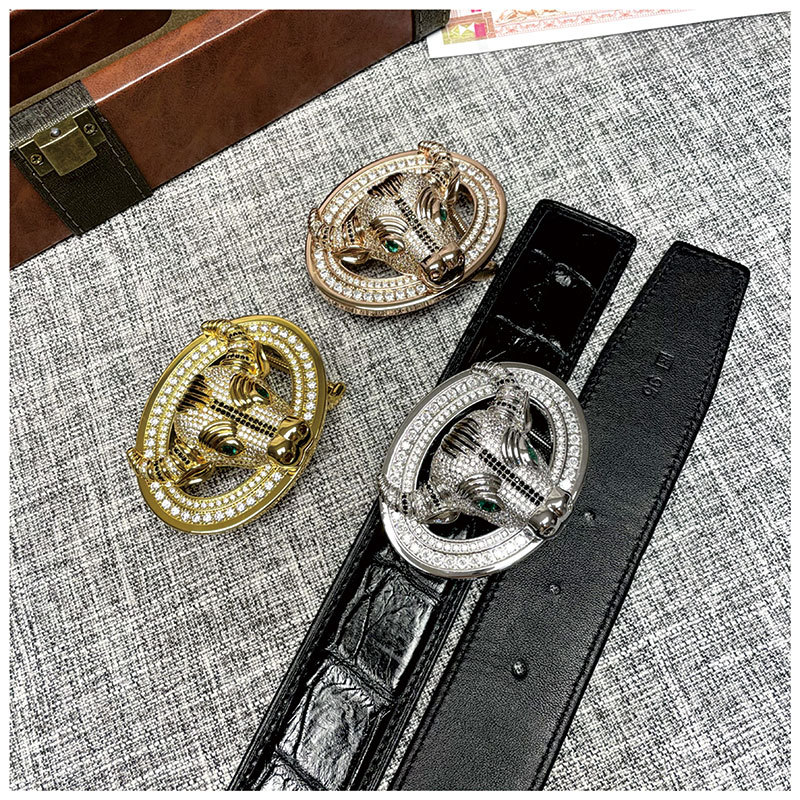 Mùa Xuân Kinh Doanh Ánh Sáng Sang Trọng Thắt Lưng Nam Da Thật Mà Không Cần Đường Khâu Da Cá Sấu Handmade Kim Cương Dây Điểm Một Dropshipping