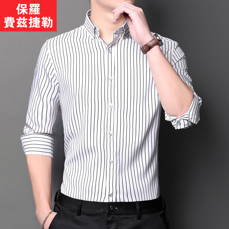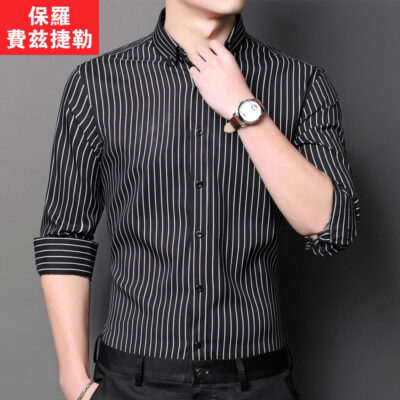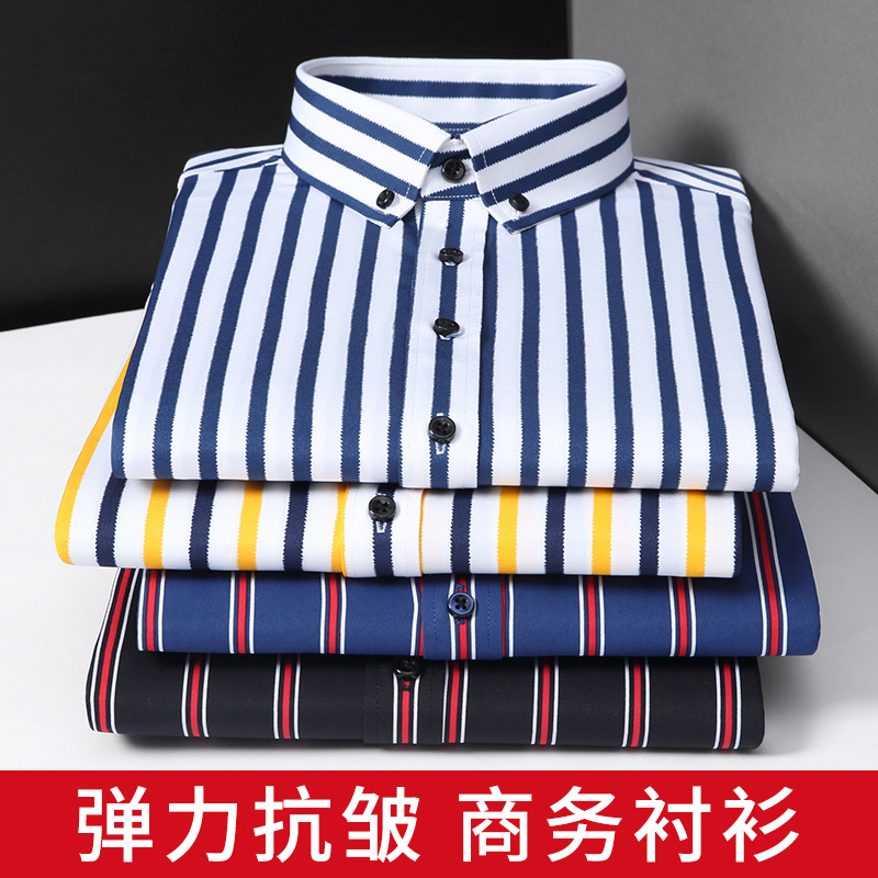 Mùa Xuân Mới 2023 Thời Trang Áo Sọc Nam Co Giãn Áo Sơ Mi Công Sở Dài Tay