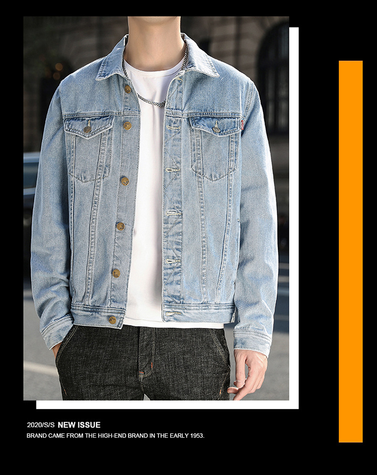 Mùa xuân mới áo khoác denim nam phong cách retro đẹp trai Áo khoác nam giản dị xu hướng mùa xuân và mùa thu quần áo denim