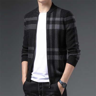 Mùa Xuân Năm 2021 Mùa Thu Đông Dày Dệt Kim Cardigan Nam Plus Kích Thước Cổ Kẻ Sọc Cổ Bóng Chày Mỡ Áo Len Áo Khoác Áo Khoác
