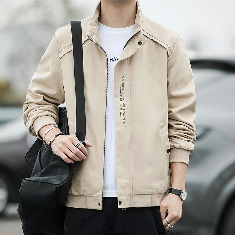 Mùa Xuân Năm 2023 Áo Khoác Nam Cổ Đứng Màu Thêu Thể Thao Dáng Rộng Top Áo Khoác Nam Thương Hiệu Thời Trang Hàn Quốc