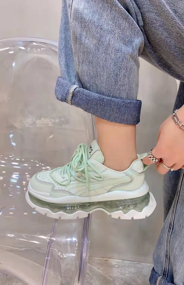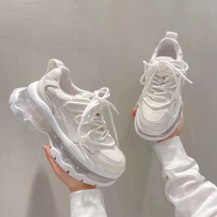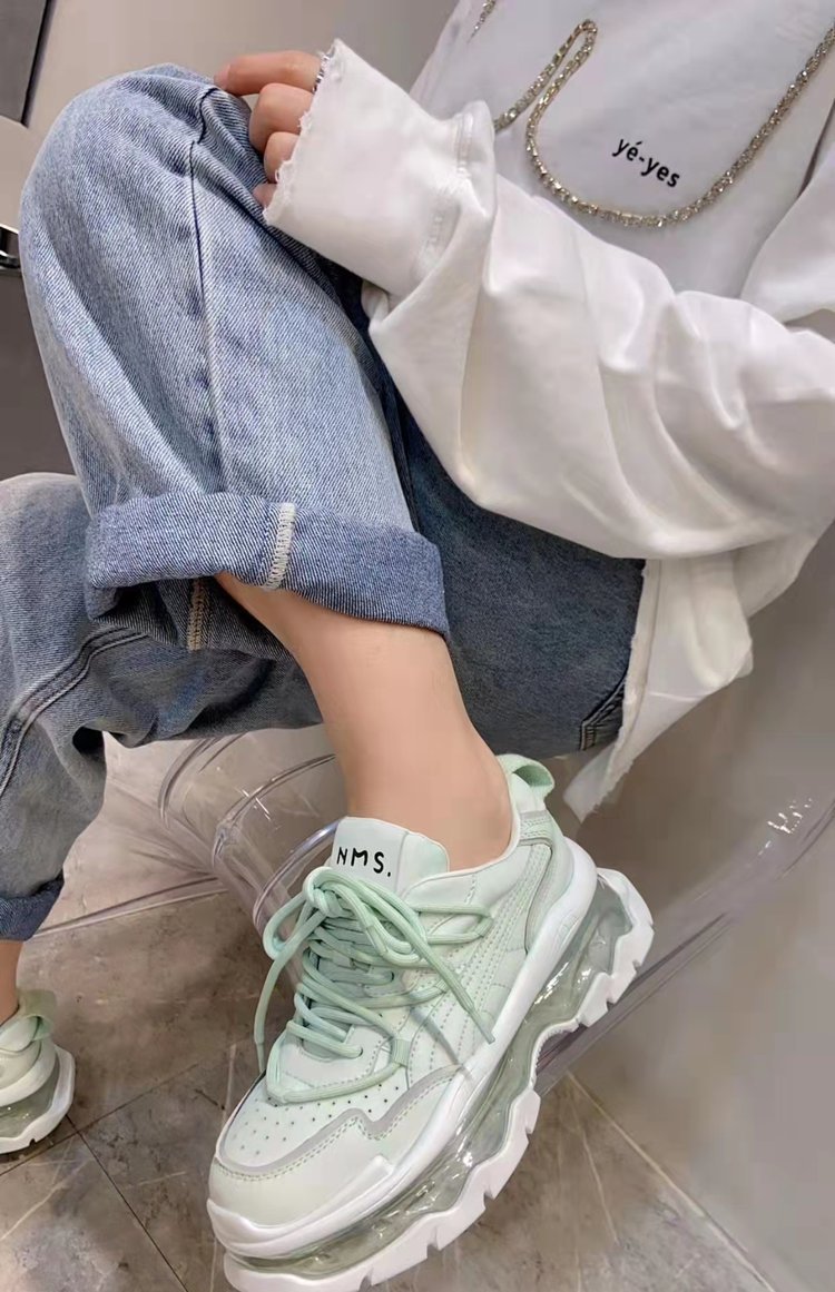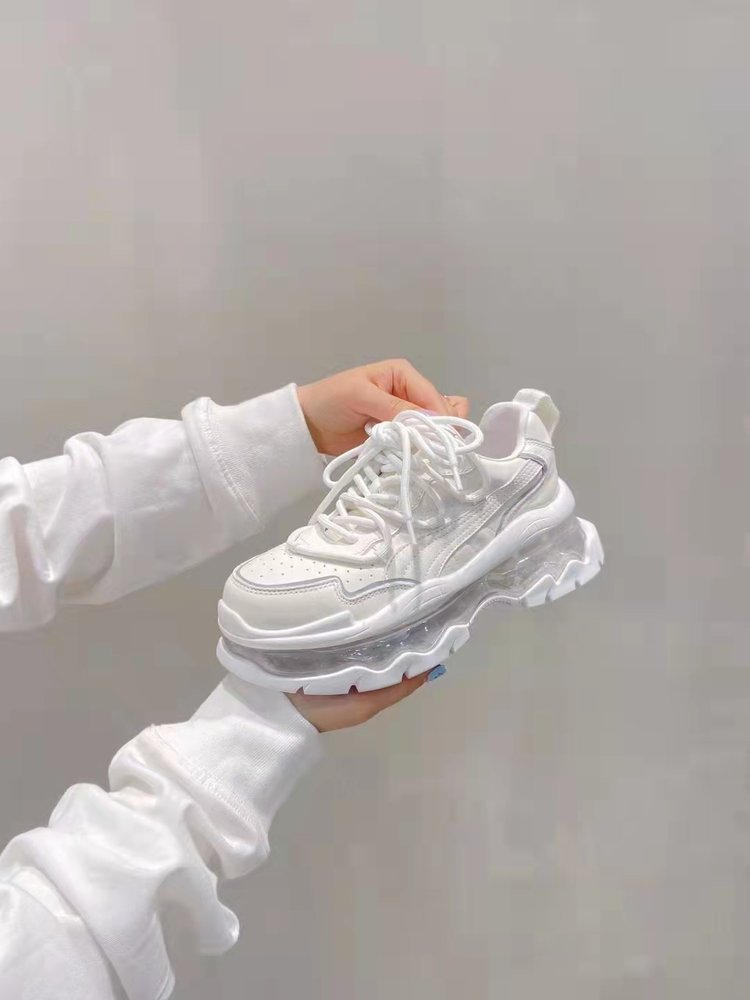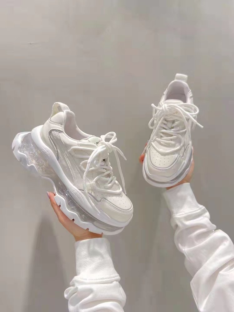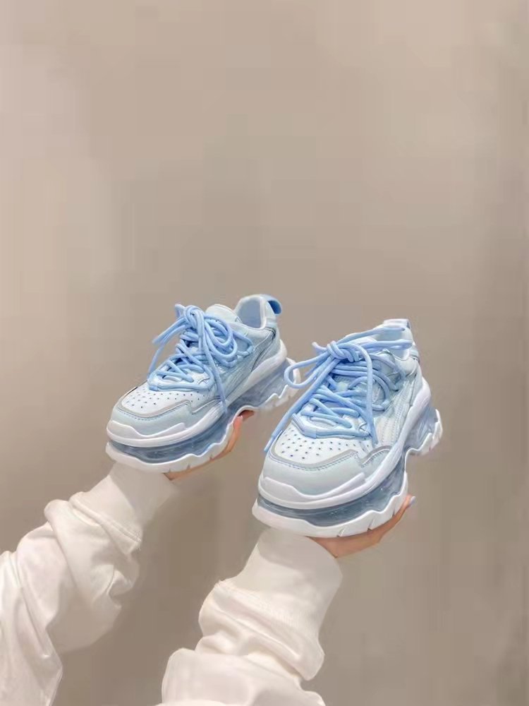 Mùa xuân năm 2023 giày thể thao và giải trí có dây buộc mới dành cho nữ muffin đế dày đệm khí tăng cường bố giày spot
